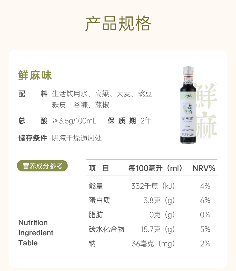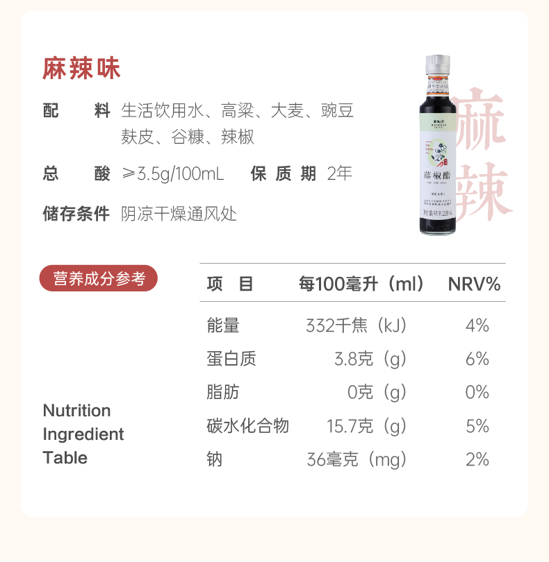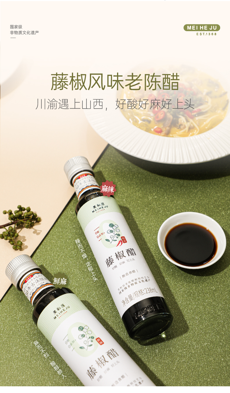 【美和居-国家非遗】0零添加剂藤椒麻辣醋山西老陈醋凉拌238ml