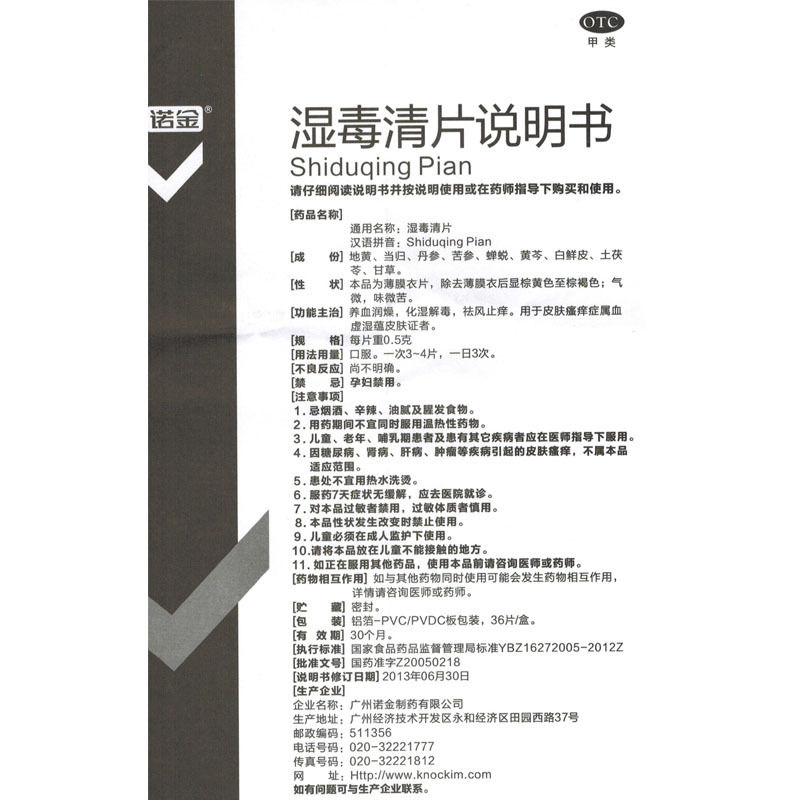 诺金湿毒清片0.5g*36片/盒 养血润燥化湿解毒祛风止痒及皮肤瘙痒