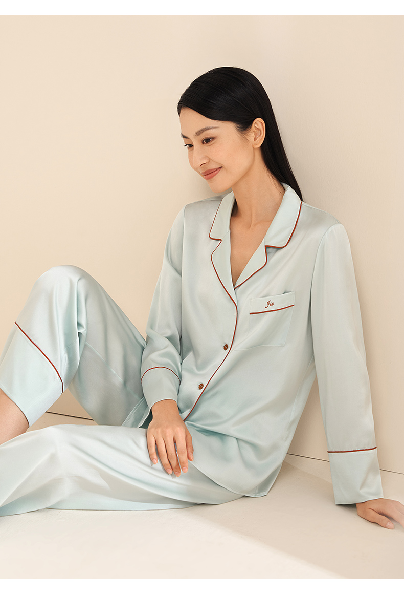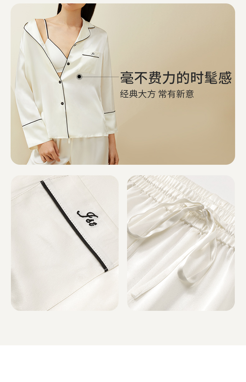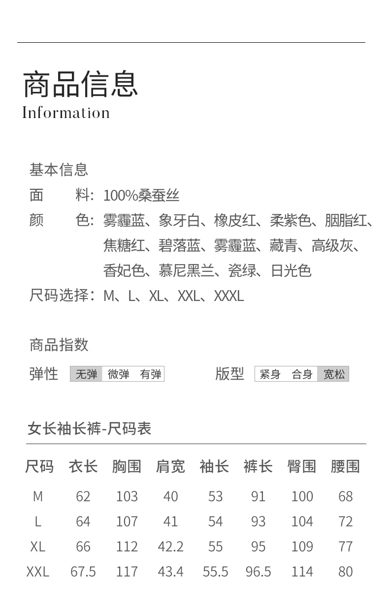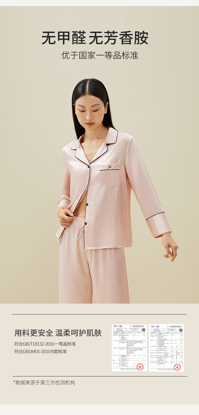 金三塔重磅真丝睡衣女春夏100%桑蚕丝简约丝绸家居服宽松薄款素色长袖衣裤套装(会员活动专属链接) 9YSF8C209/YSM9A203