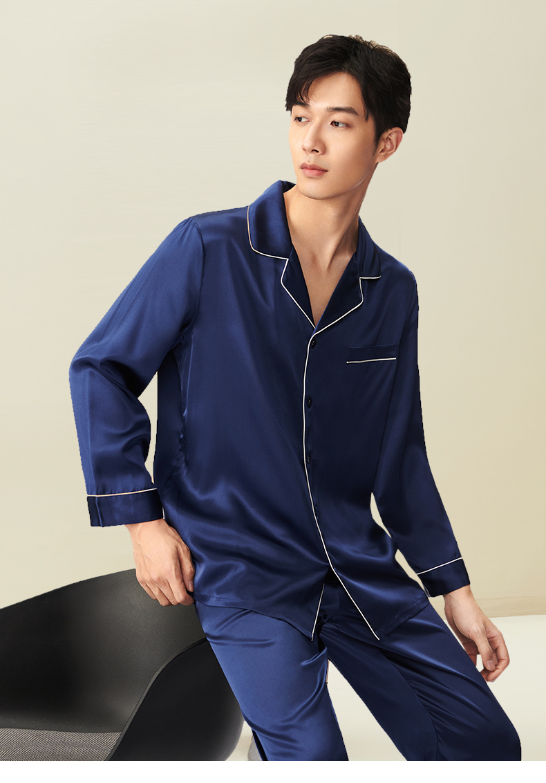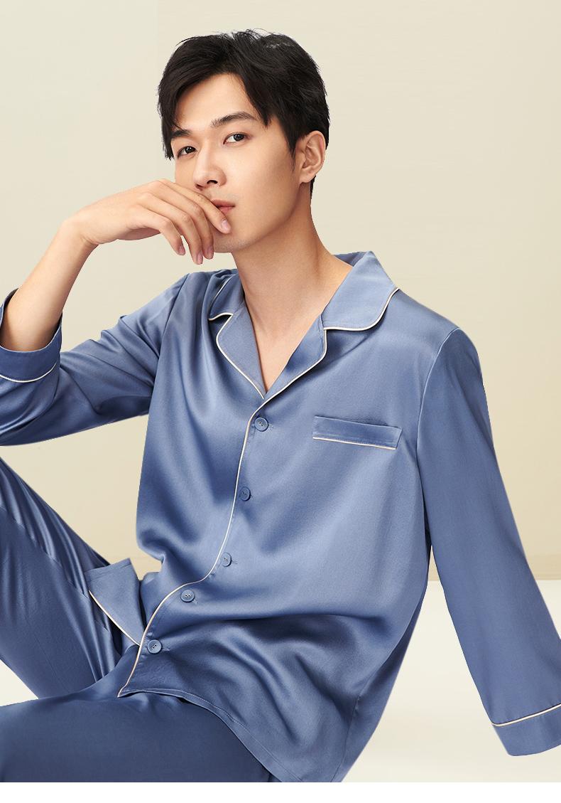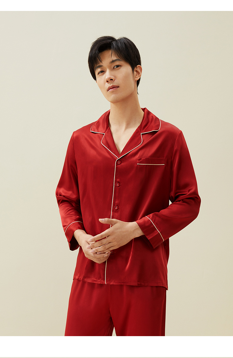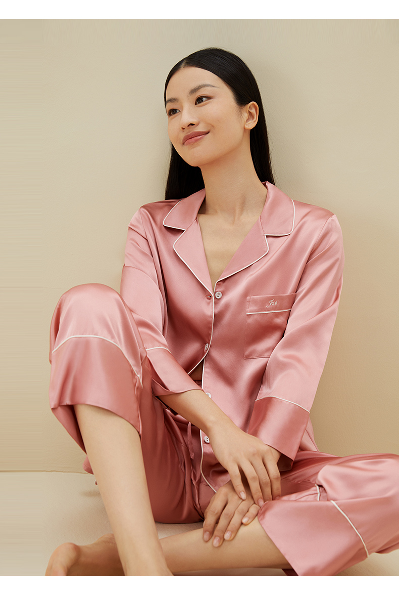 金三塔重磅真丝睡衣女春夏100%桑蚕丝简约丝绸家居服宽松薄款素色长袖衣裤套装(会员活动专属链接) 9YSF8C209/YSM9A203