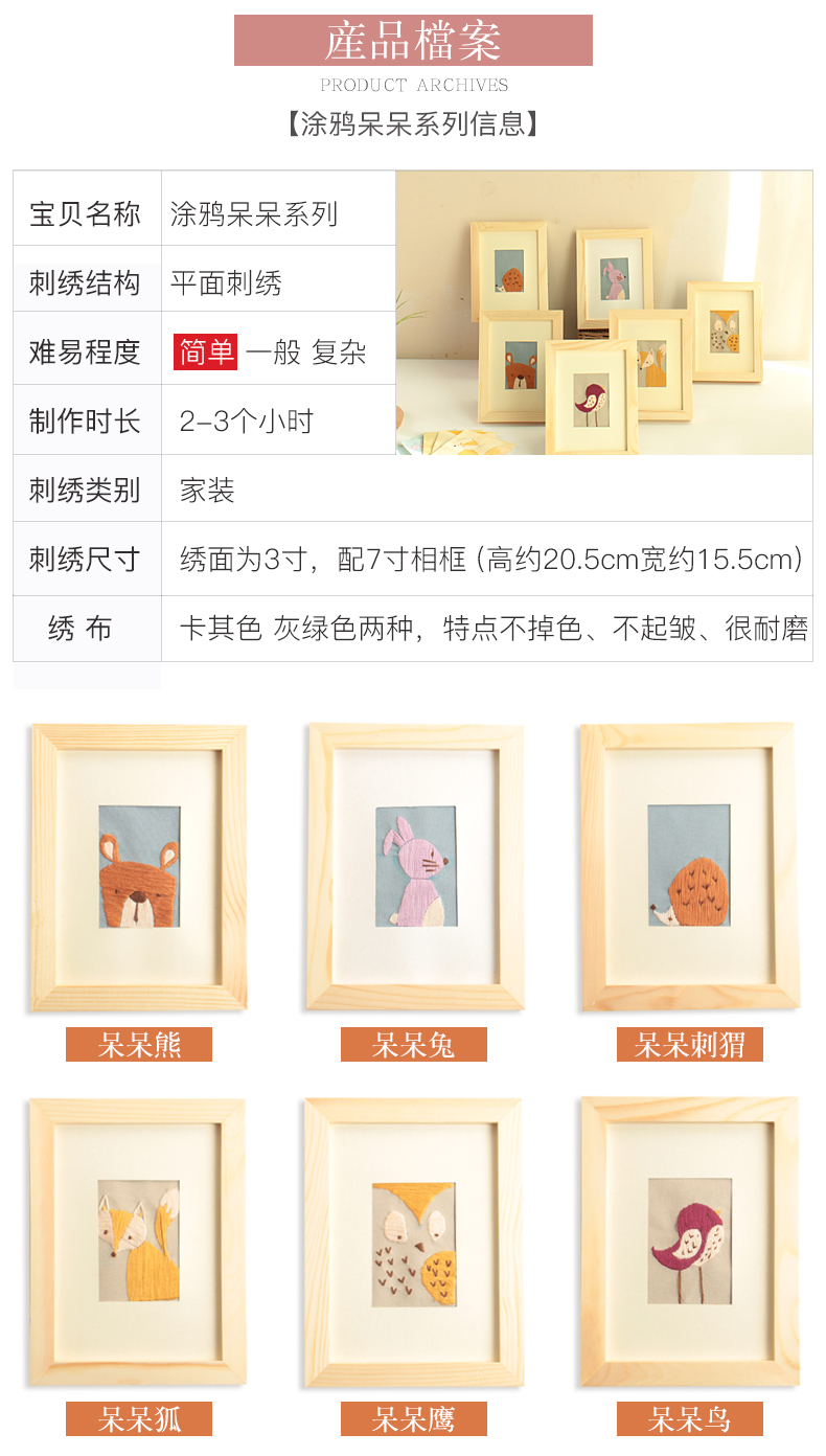 【清仓】涂鸦呆呆儿童手工动物刺绣diy初学套件 新生入门制作材料包