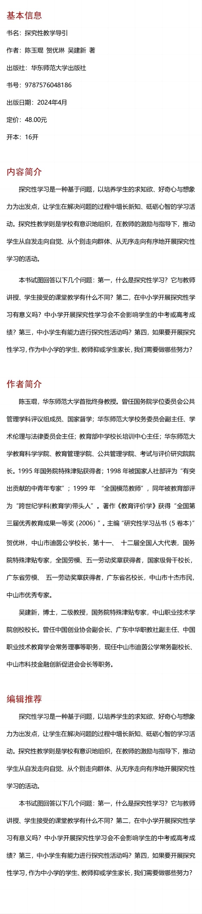 探究性教学导引 帮助学生在探究问题中增长新知 陈玉琨 贺优琳 吴建新著
