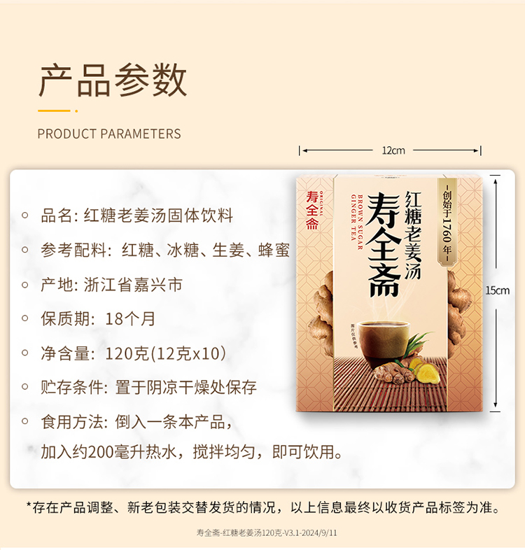 【寿全斋】红糖老姜汤 红糖小黄姜蜂蜜速溶姜汤姜汁冲饮120g