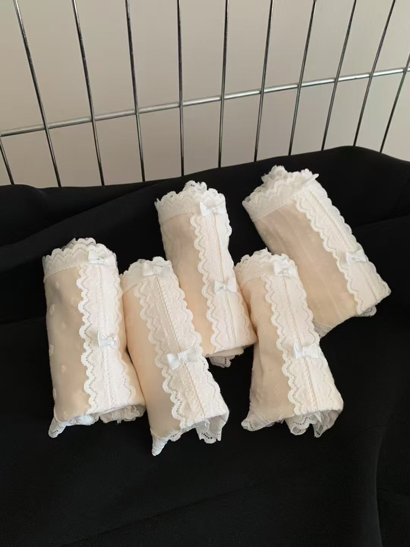5条装!仙仙奶油蕾丝内裤7A抑菌内裤 提花褶皱肌理 温柔清新颜值拿捏少女心