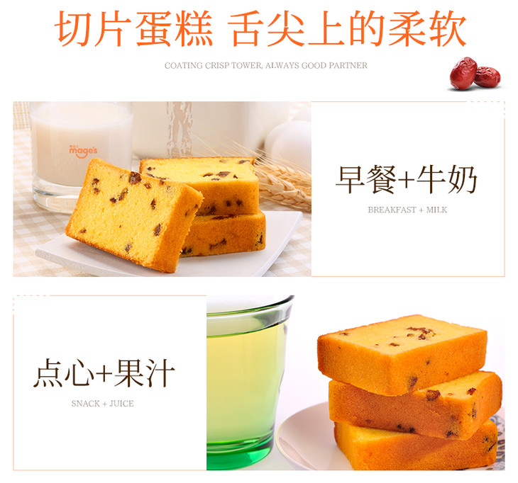 麦吉士切片蛋糕500g 原味红枣味营养早餐面包 办公室零食