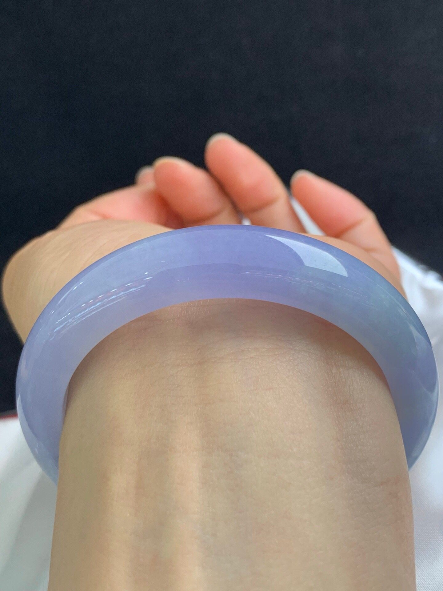 612642,56.3圈口,冰紫正圈平安镯,茄紫色,自然光不失色,种水好,完美,尺寸:56.3-12.7-8.6,超值价💰42000 #优石客珠宝#香玉荟萃