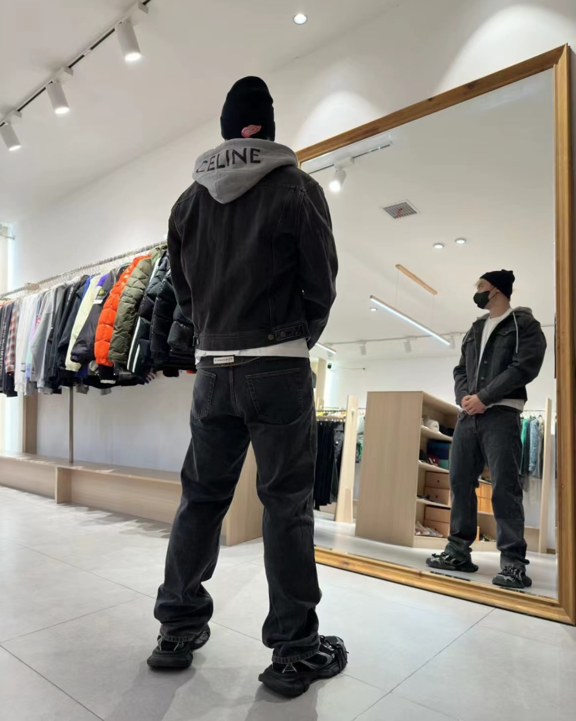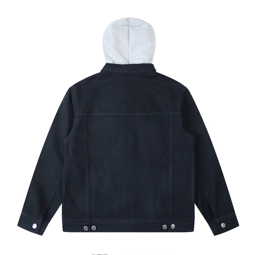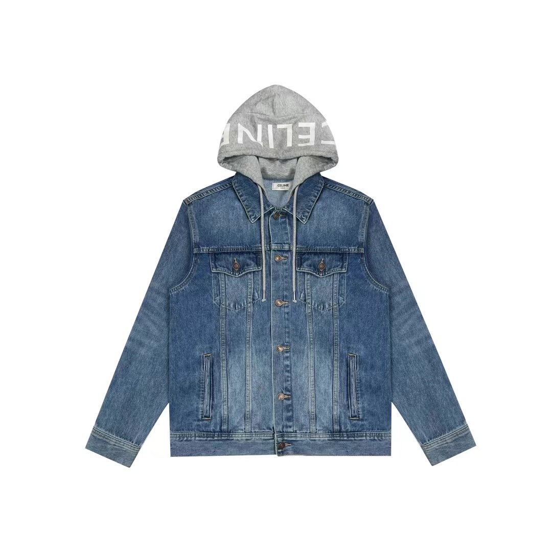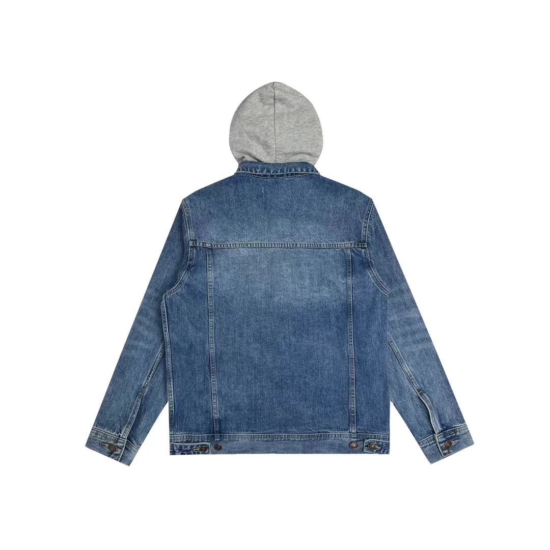 新款假两件拼接连帽印花牛仔外套入秋款没错的 这件我觉得不仅可盐也可甜 搭配无数种风格做复古真的很绝 版型很好 不是太宽容也不紧身有点厚度 很适合秋天穿 帽子带有C家的字母 假两件设计很有feel 一年四季都可以穿 男女同款采用进口材质厚版胶制版,靠厚版来保证膜的厚度。帽子独特拼接设计更显洋气,面料裁片成衣后进行砂洗,就是用砂洗剂对织物进行磨砂处理,经过处理后会使牛仔布部分褪色,牛仔布表面布满柔和的茸毛处理。