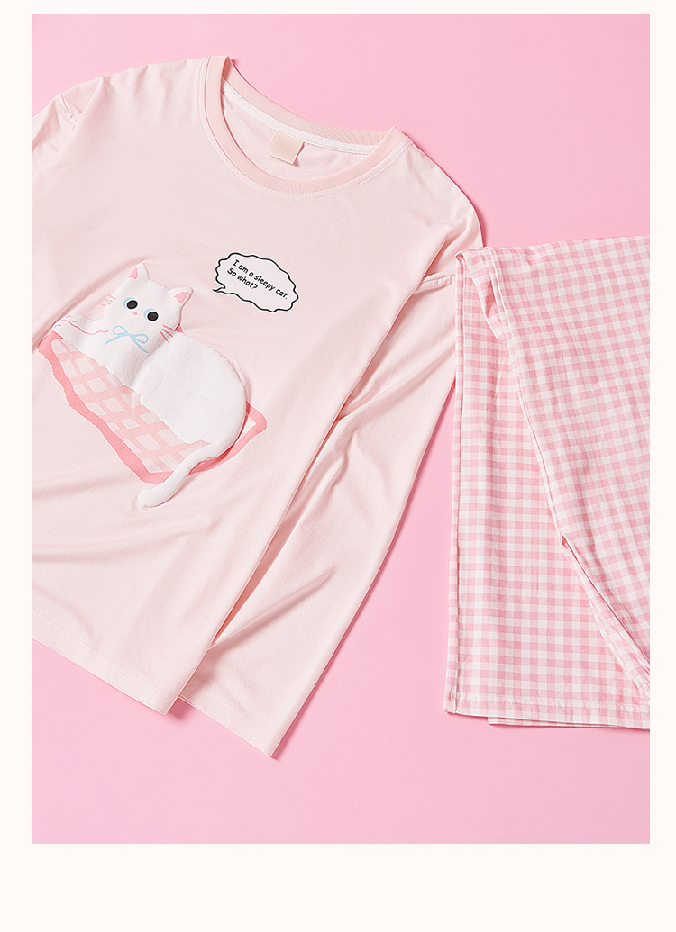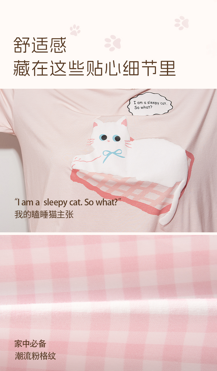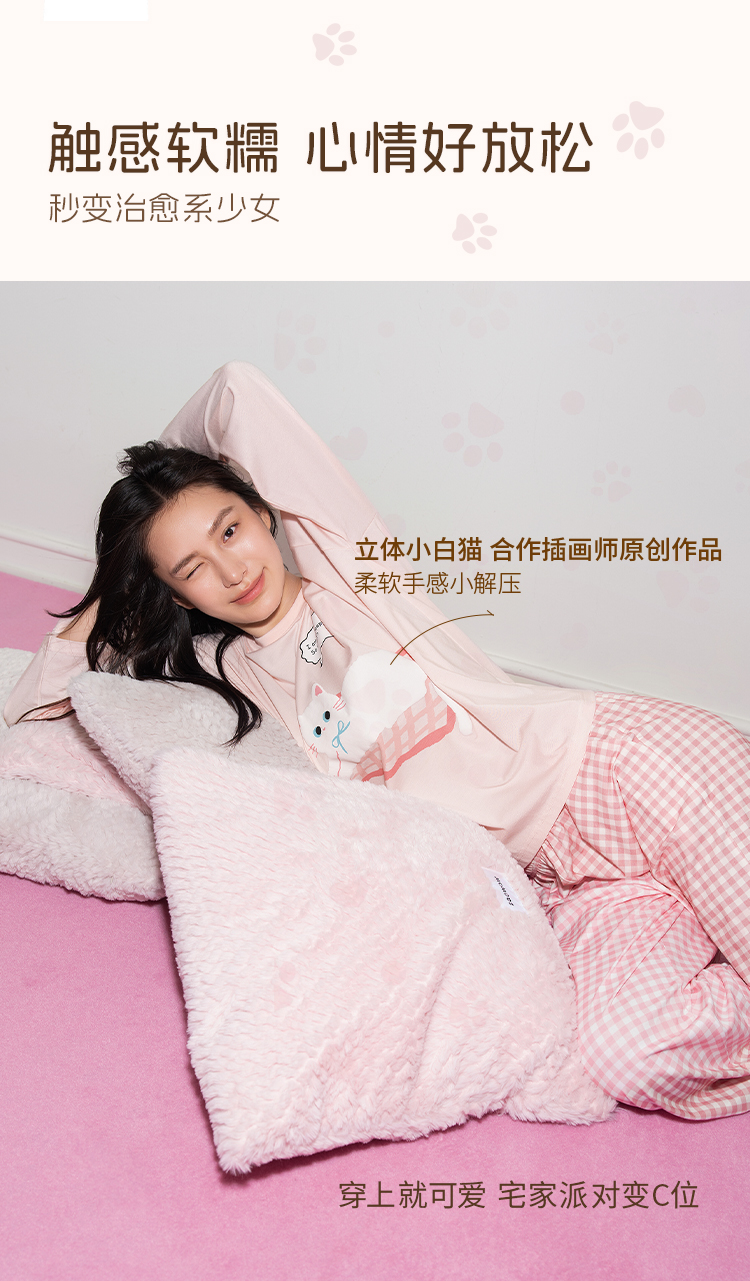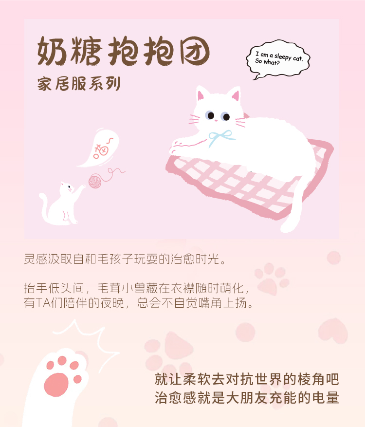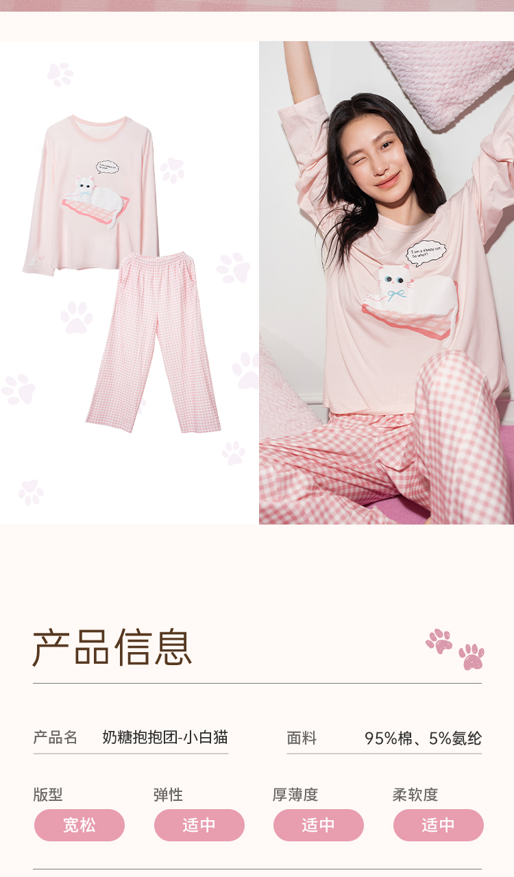 奶糖派家居服奶糖抱抱团小白猫套头睡衣长袖甜美可爱女柔软舒适秋