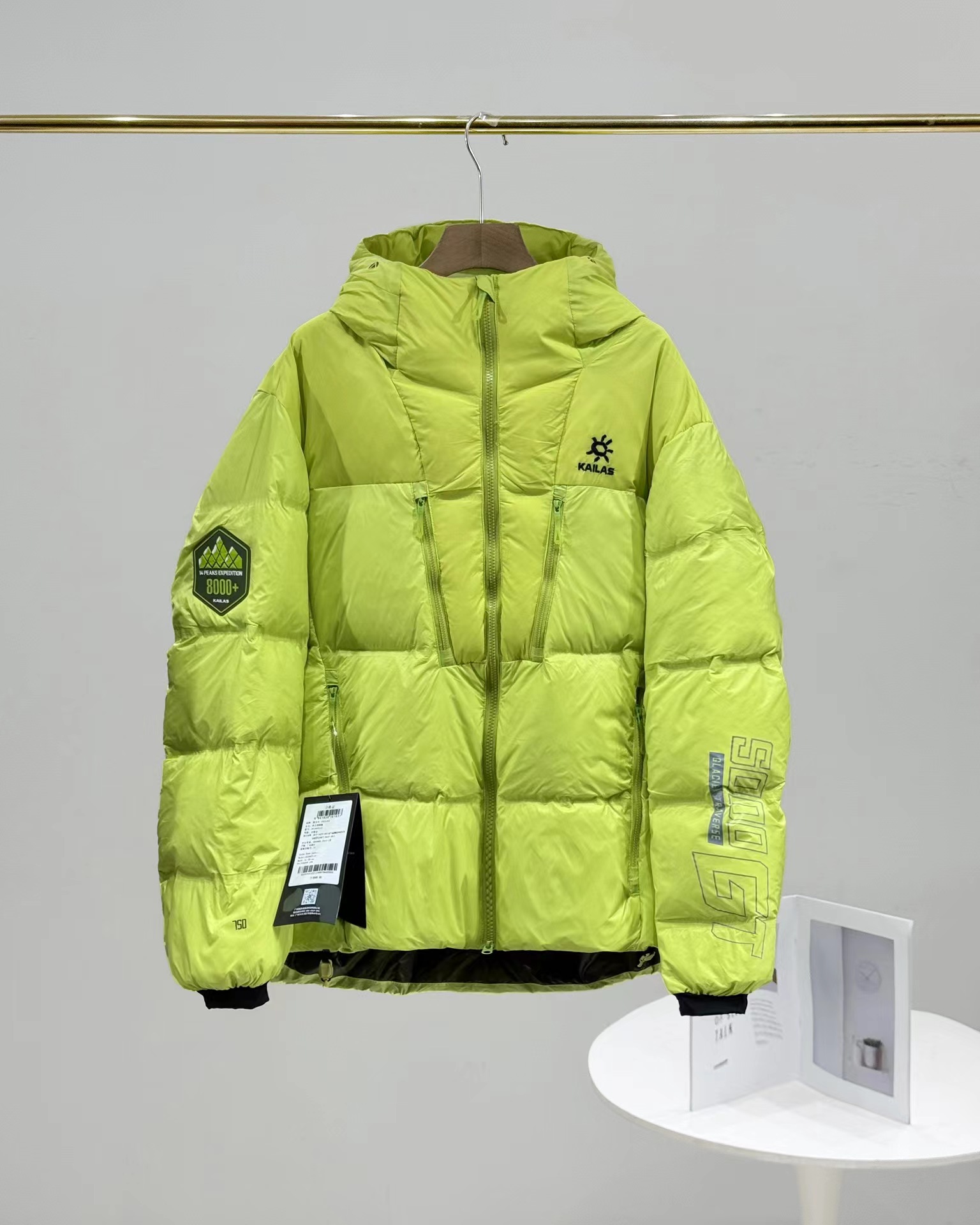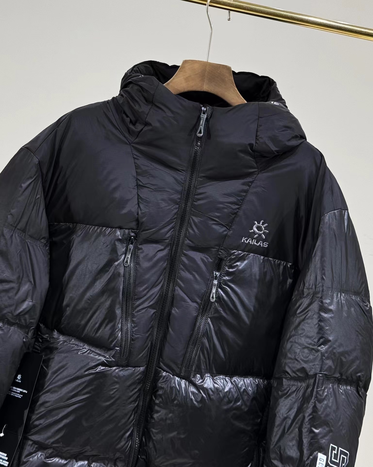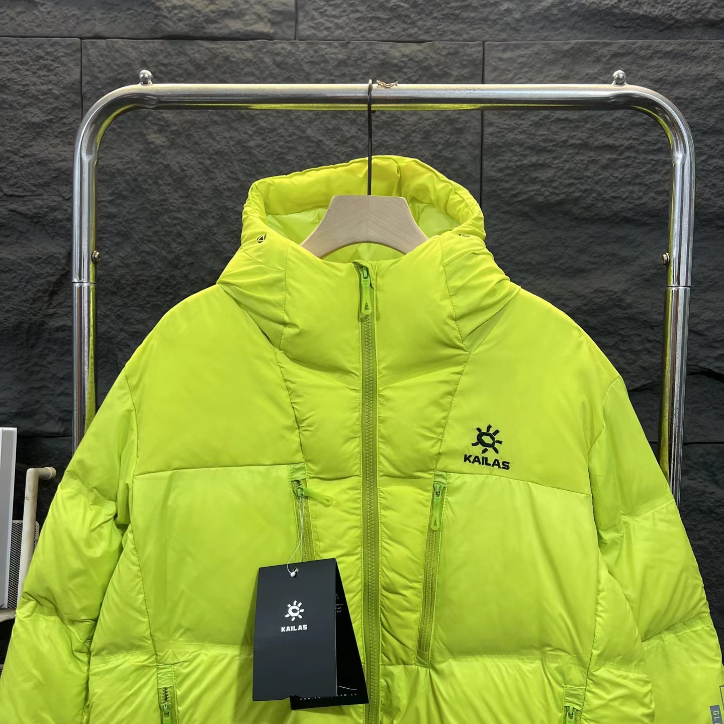 “来古”5000GT羽绒服 保暖性强:填充1000蓬高品质羽绒,含绒量高,能有效锁住热量,保暖效果极佳,适合在寒冷的户外环境中穿着 (实拍可见)填充国标拒水90白鸭绒,支持检测!轻便易携:重量仅450g左右,易于携带和收纳,方便在户外活动中随时携带 。防水防风:面料具有防泼水功能,能有效抵御小雨和风雪,同时防风性能良好,可阻挡寒风侵 所有五金辅料均为定制定染色:整衣采用三种不同拉链头,内里口袋配特殊色拉链,帽子及下摆抽绳、帽子气眼,均攻克极高工艺难度。