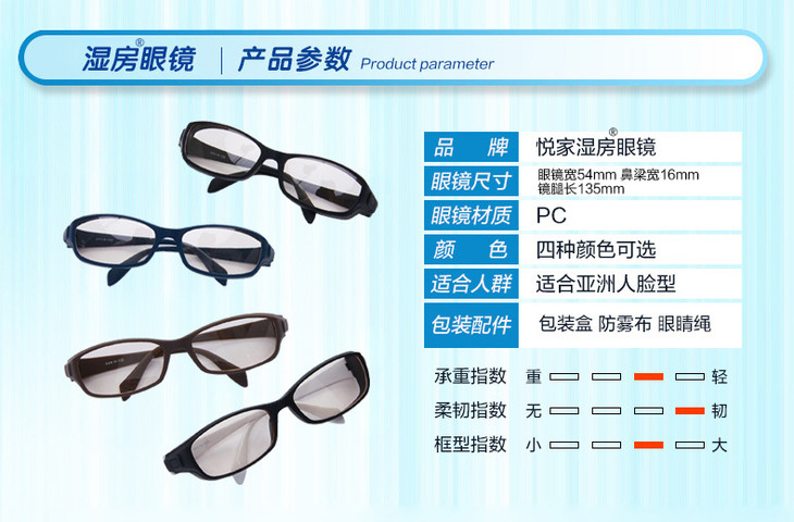 YourGa悦家湿房眼镜室内YG-002普通型防蓝光防辐射眼镜护目镜防眼干疲劳