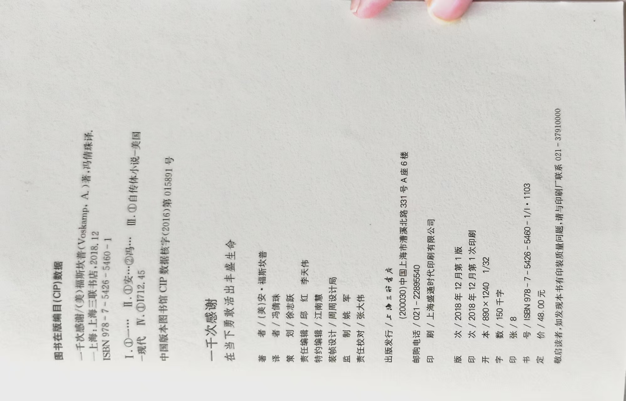 这周zui精彩之处:阅读安·福斯坎普的《一千次感谢》。伟大的信息,直指人心的写作风格。