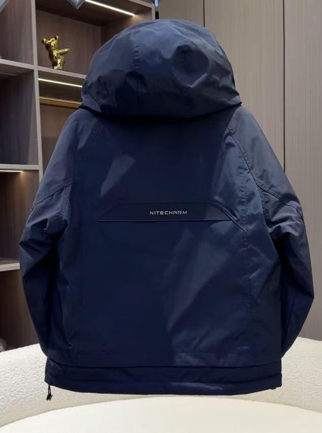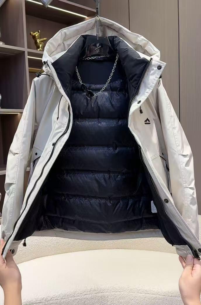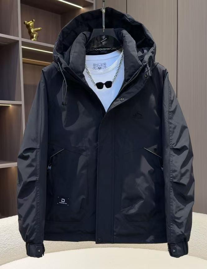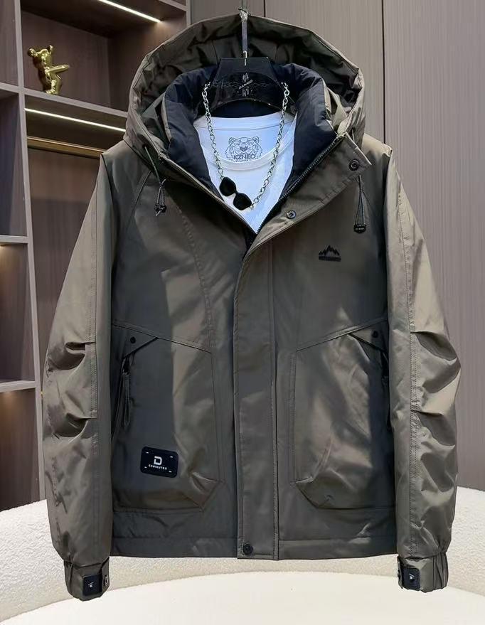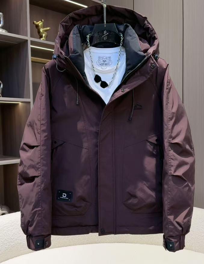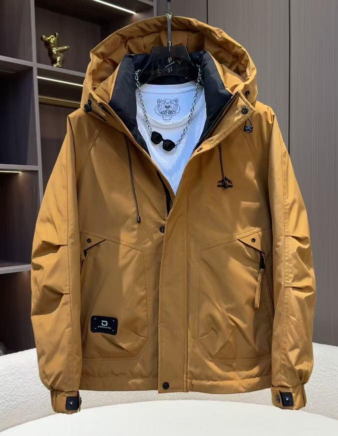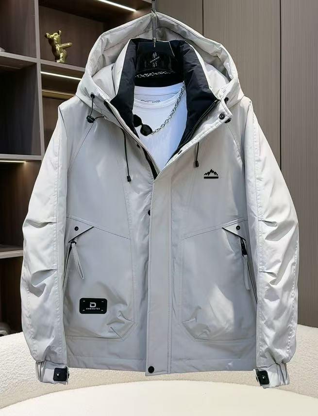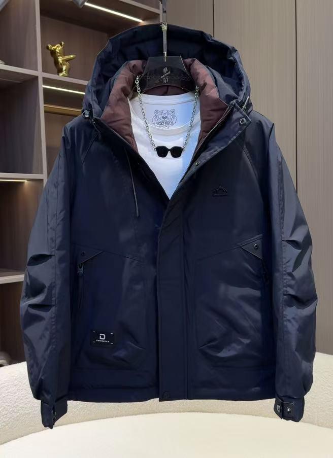 冬季新款男士连帽户外保暖防寒服休闲痞帅工装加厚翻领羽绒服国标