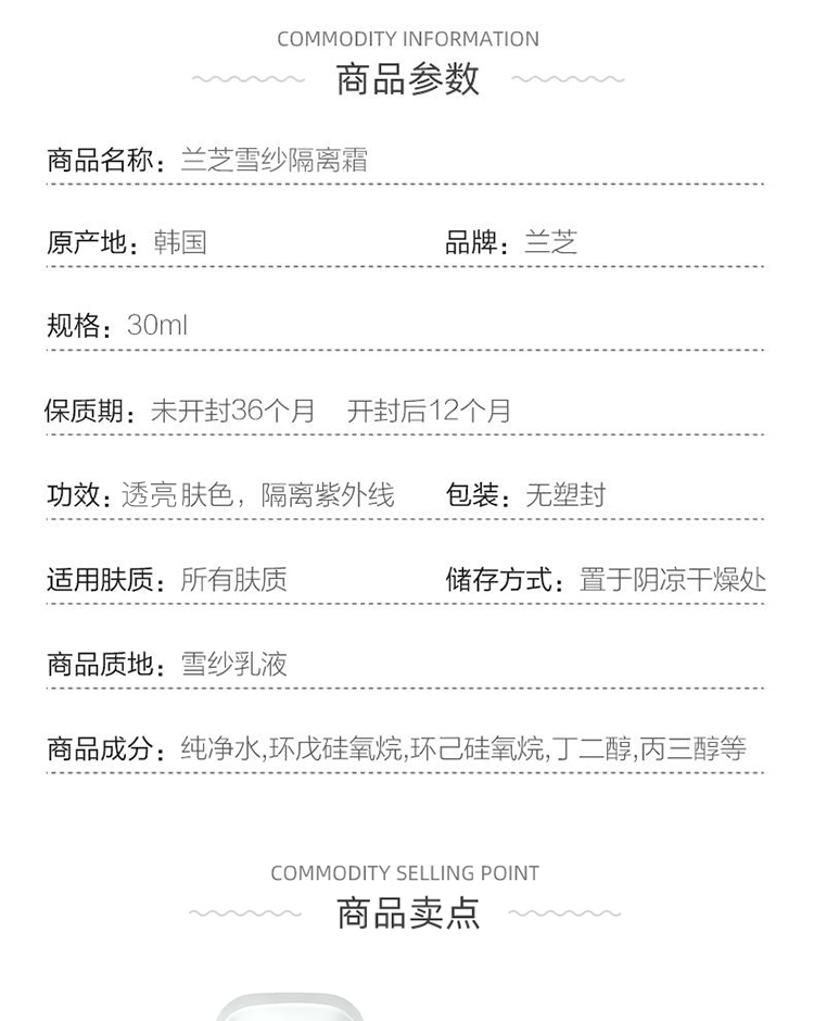 【妆前必备】兰芝雪纱隔离霜妆前乳打底修颜保湿遮瑕提亮防晒,一支多效,解锁清透裸妆~