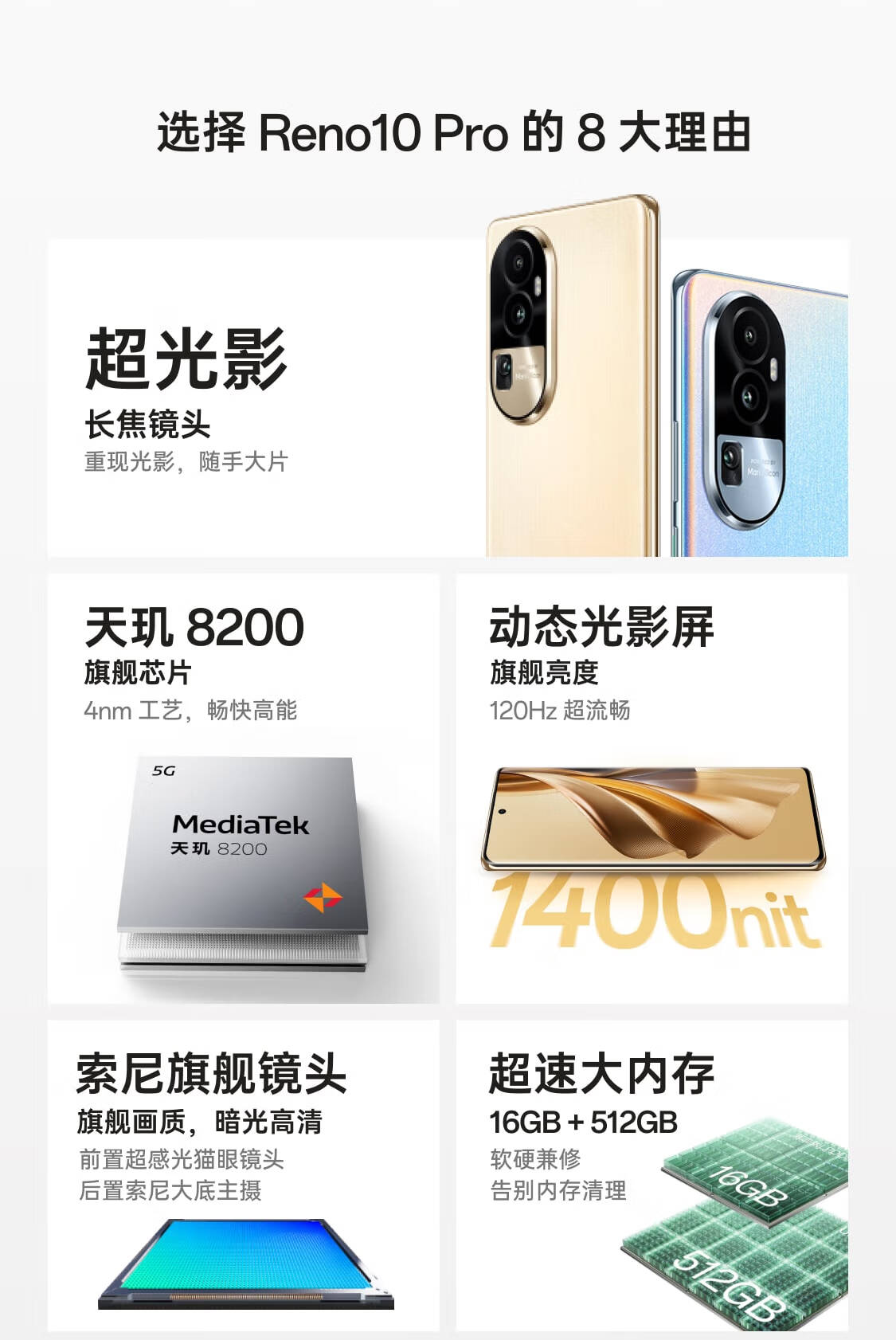 OPPO Reno10 Pro天玑8200旗舰芯片超光影长焦镜头长寿版100W超级闪充超大内存5G手机