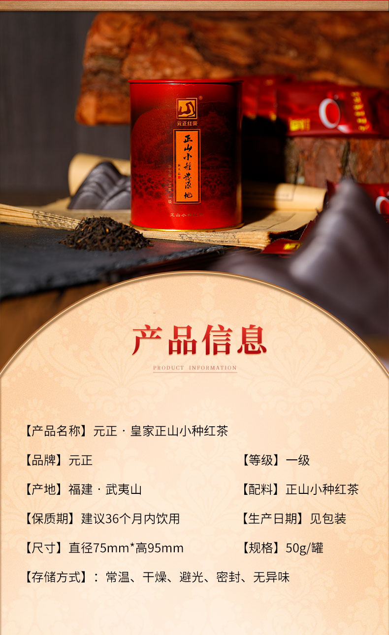 元正 皇家一级 小种红茶叶小包装袋泡装武夷红茶罐装50g