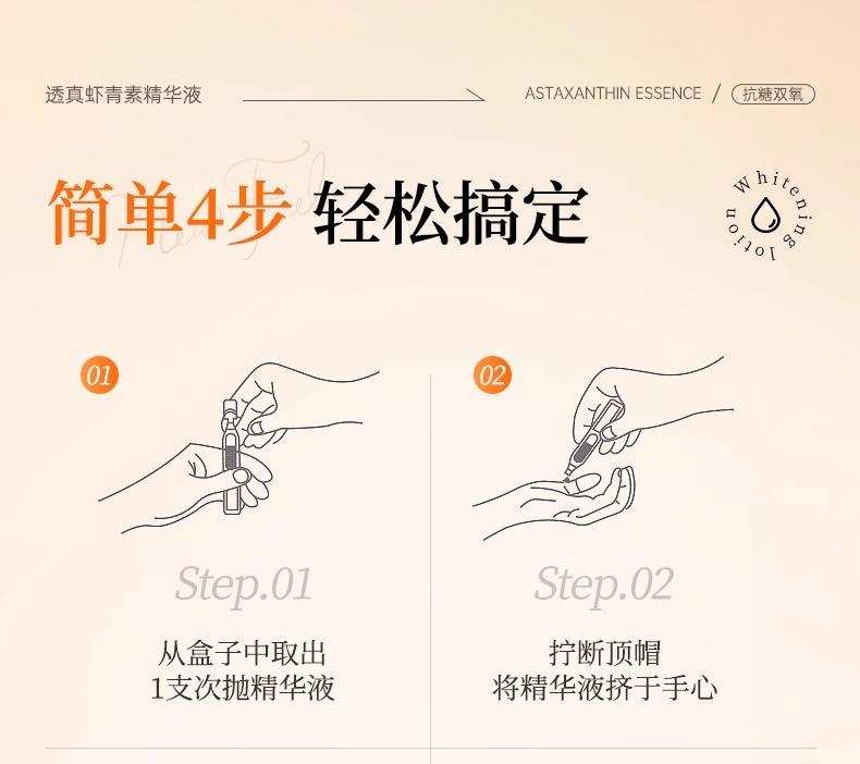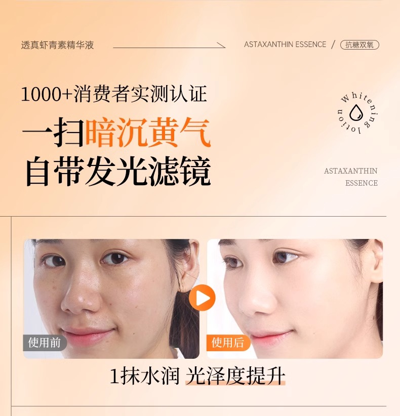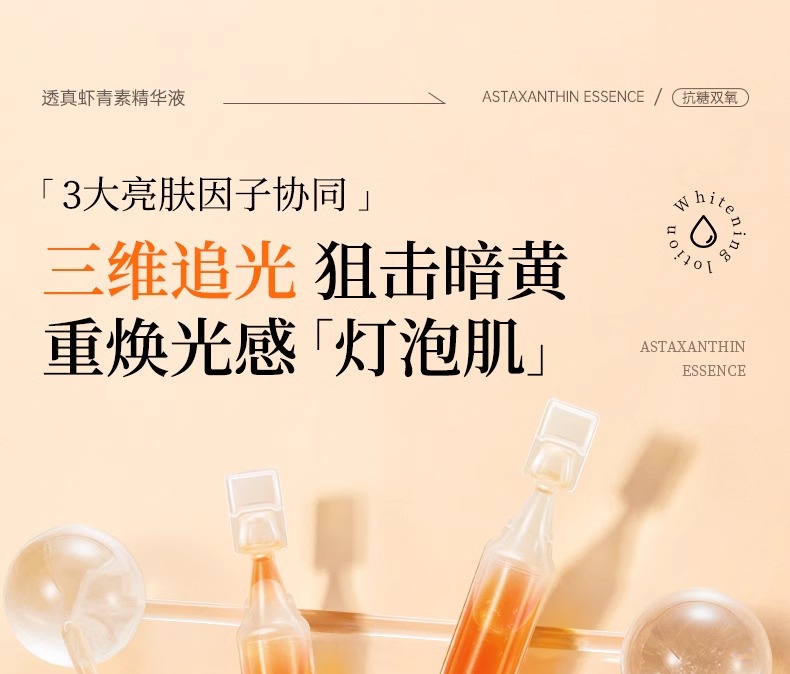 【老客专属福利】虾青素精华液1.5ml×30支/盒装(送泛醇积雪草舒缓修护面膜)#虾青素美白次抛精华液双抗紧致抗皱氧糖化提亮去暗黄改善暗沉官方