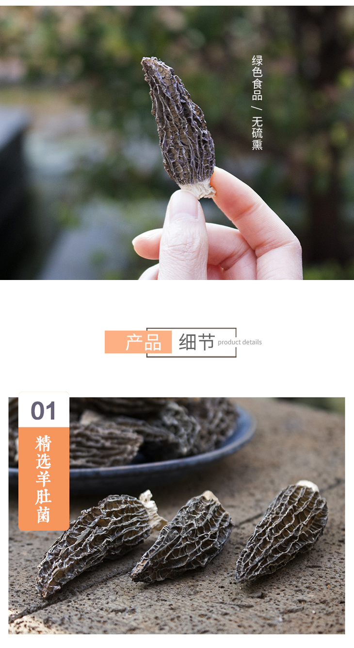 土哆哆云南精选特级干羊肚菌 无熏硫 剪柄 50克