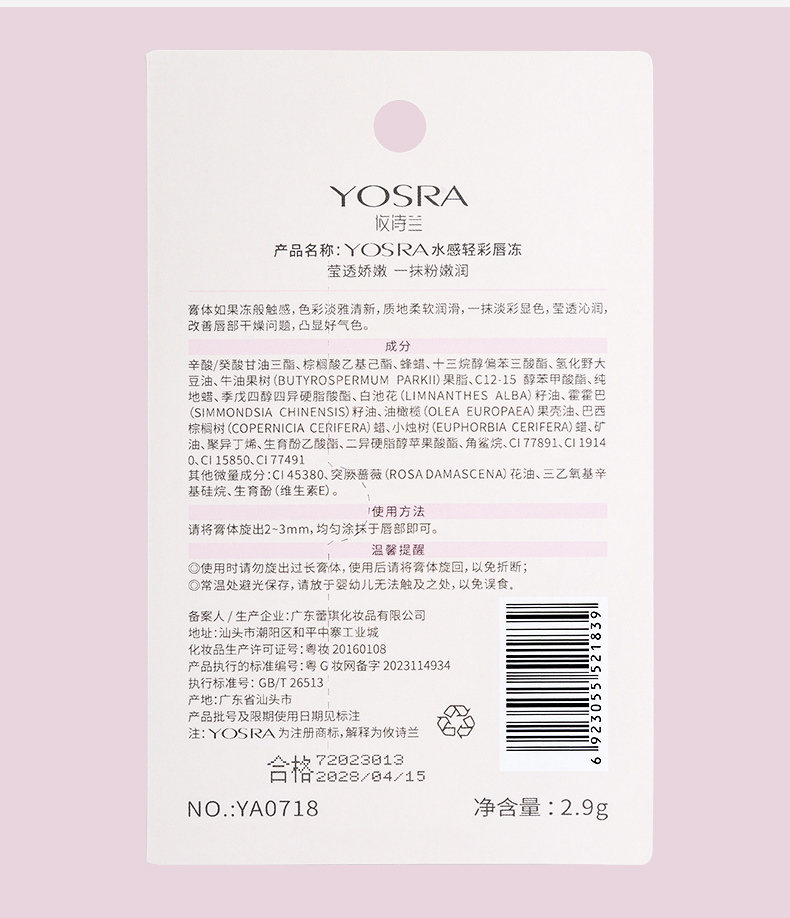 YA0718攸诗兰YOSRA水感轻彩唇冻【 24支/打】礼品