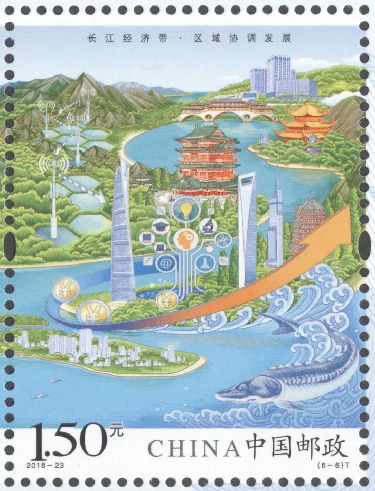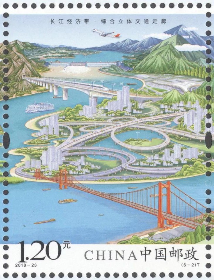 中国邮政定于2018年8月26日发行《长江经济带》特种邮票1套6枚,小全张1枚。详情如下: