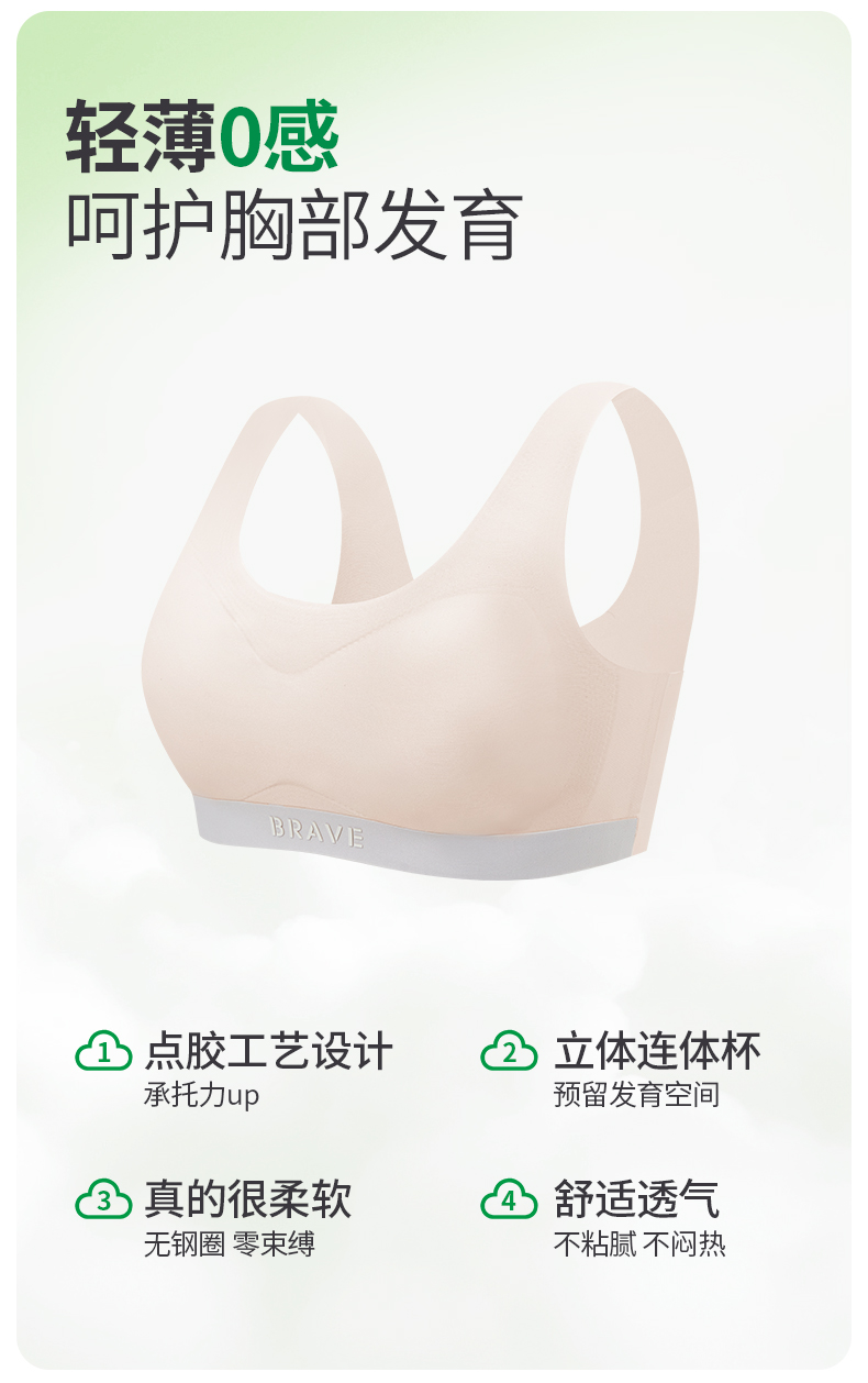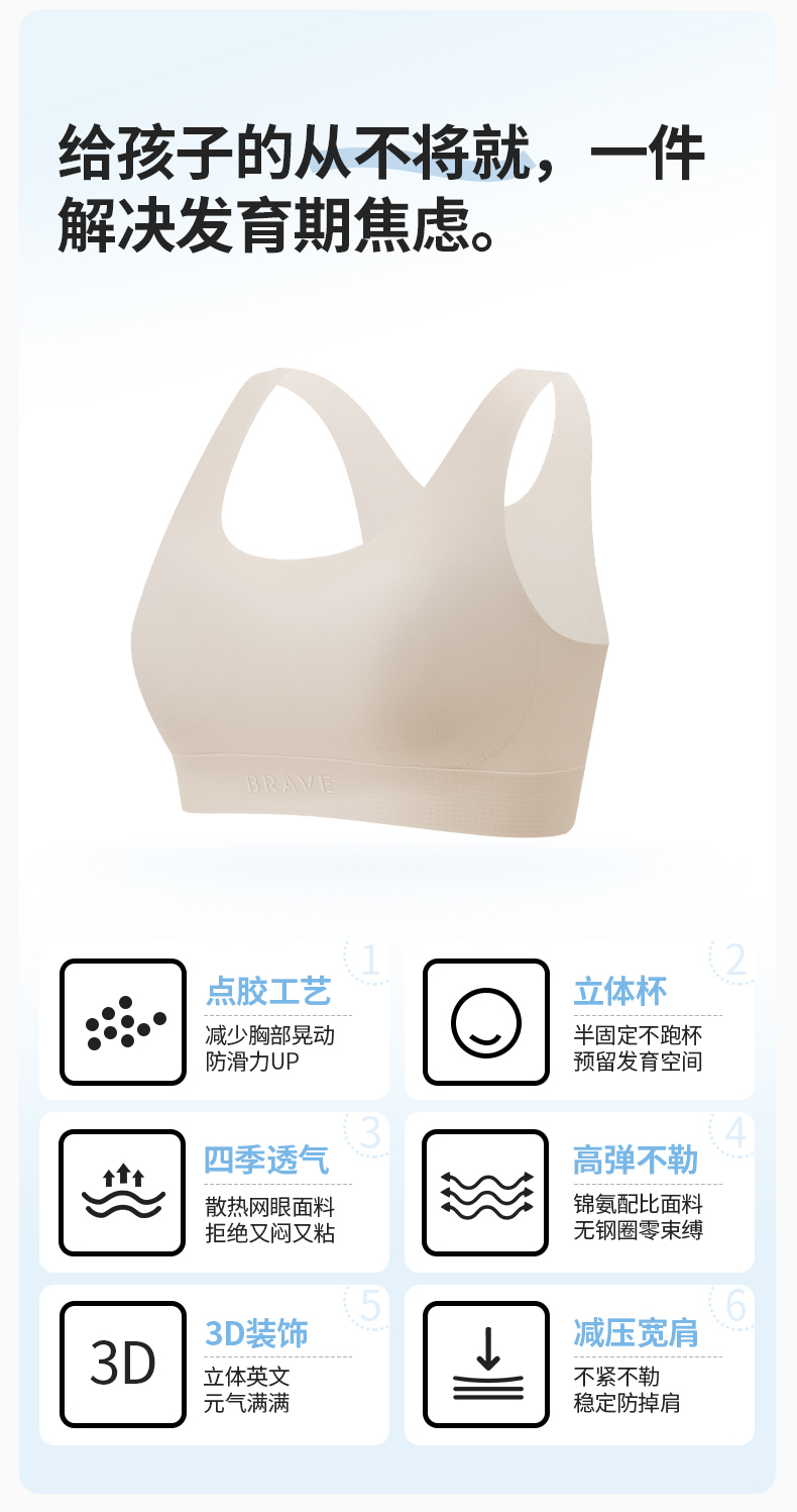 【超值2件装 颜色随机】“专为发育期女孩设计的内衣”草本初色少女内衣 运动防震2阶背心 3712/3714