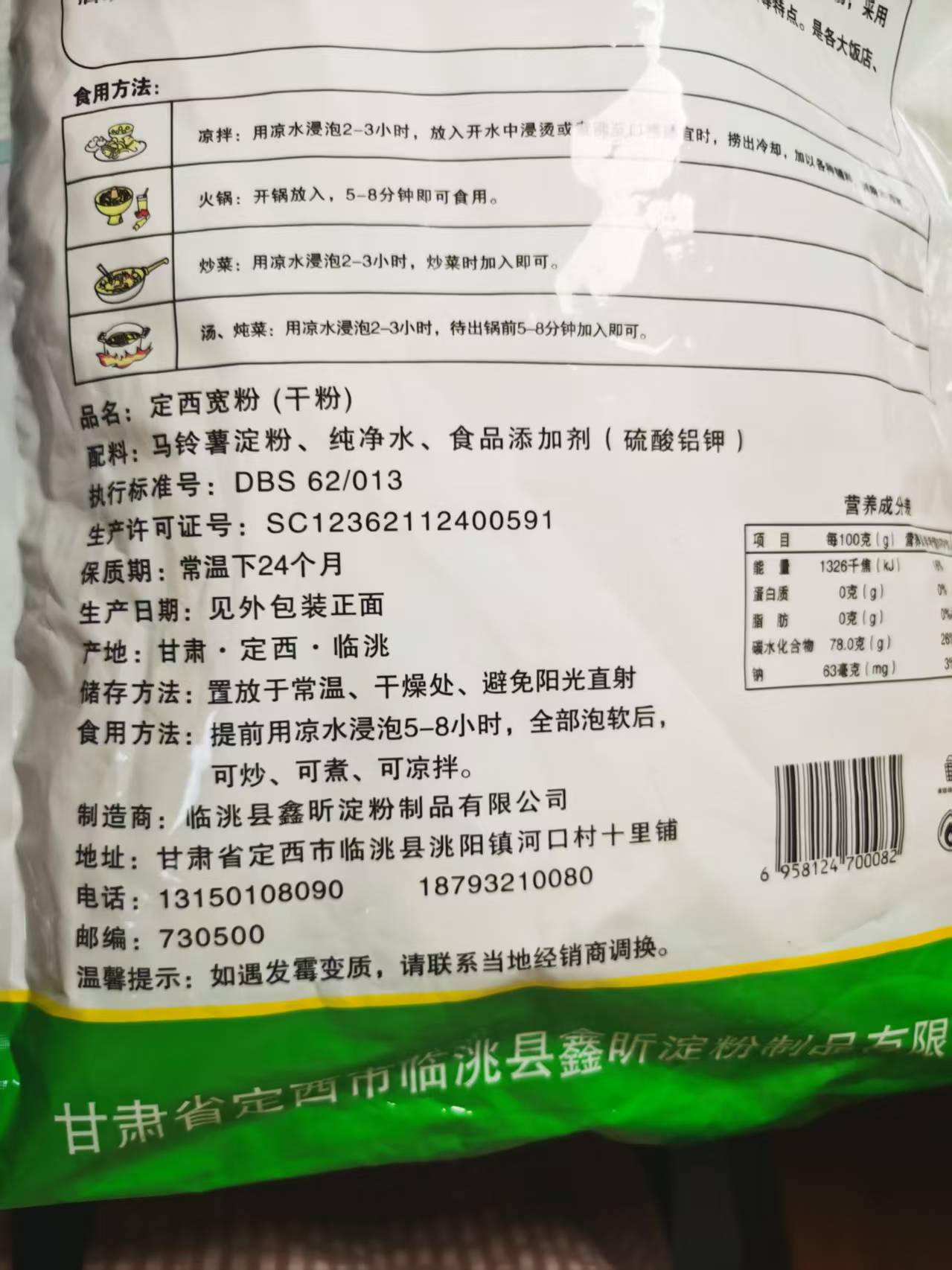 【包邮直发】临岳鑫昕 1斤装定西土豆宽粉 500g/袋(甘肃云仓直发)