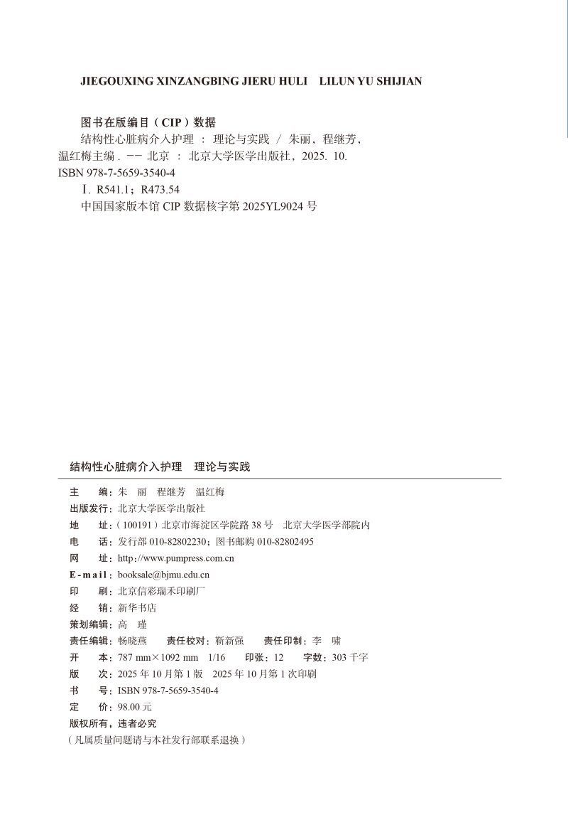书名:结构性心脏病介入护理 理论与实践