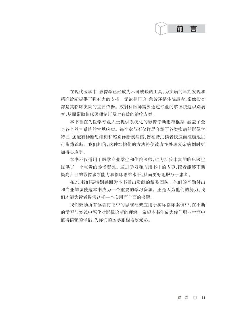 本书从影像科医师的日常工作出发,以中华医学会放射学分会青年学组的“青影智慧-影像诊断思维系列培训课程”内容为基础,系统梳理、收录神经系统、头颈与五官、呼吸系统、心脏和大血管、乳腺、消化系统、泌尿系统、生殖系统、骨关节等影像科日常工作中的近300个常见征象,从每个征象的分析入手,凝练影像征象的特征,辅以征象典型图进行说明,应用思维导图展现征象分析和诊断的思路,并融入鉴别诊断点和相应的疾病谱,抽丝剥茧,去伪存真,示范从影像征象到诊断疾病的思维过程。
