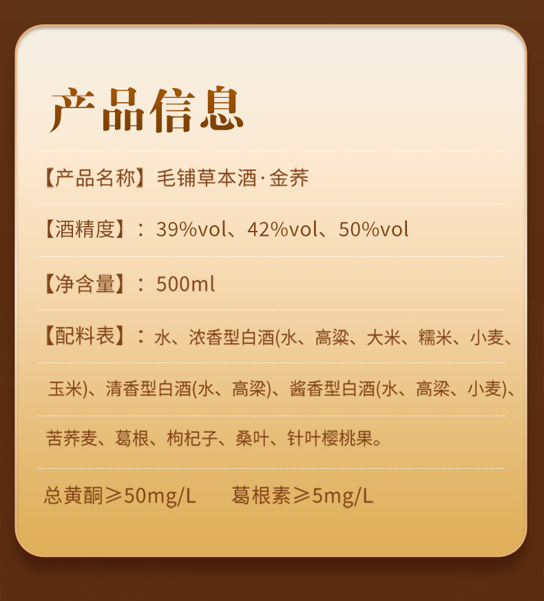 【高碳版】500ml毛铺草本酒·金荞(39度/42度/50度)