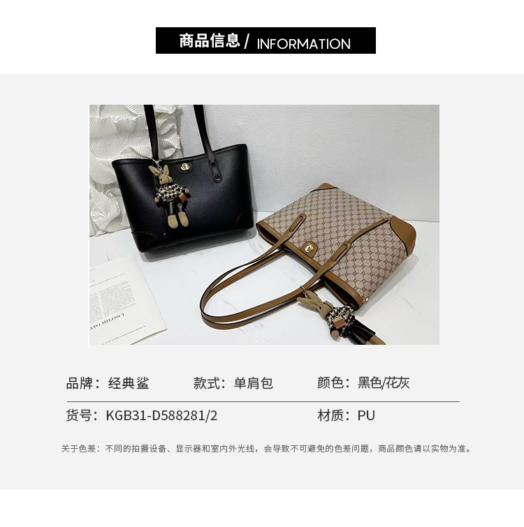 经典鲨2024年冬季新款大容量纯色简约单肩手提包托特包KGB31-D588281