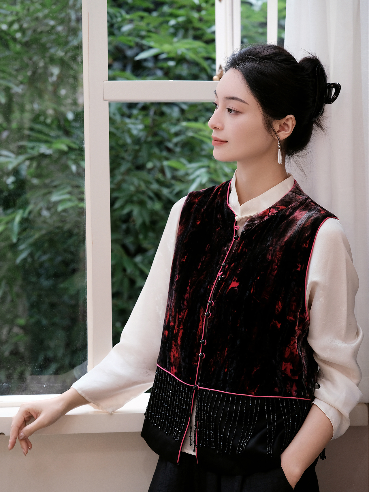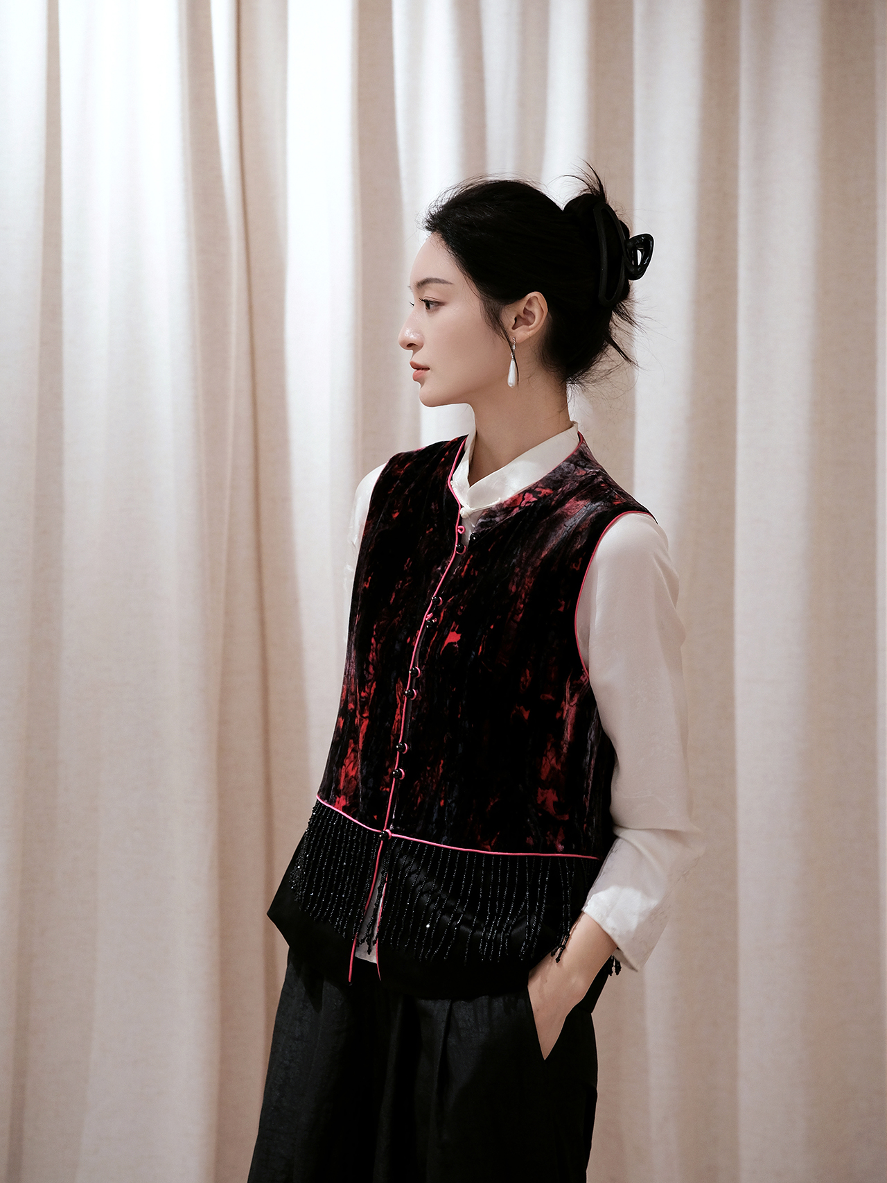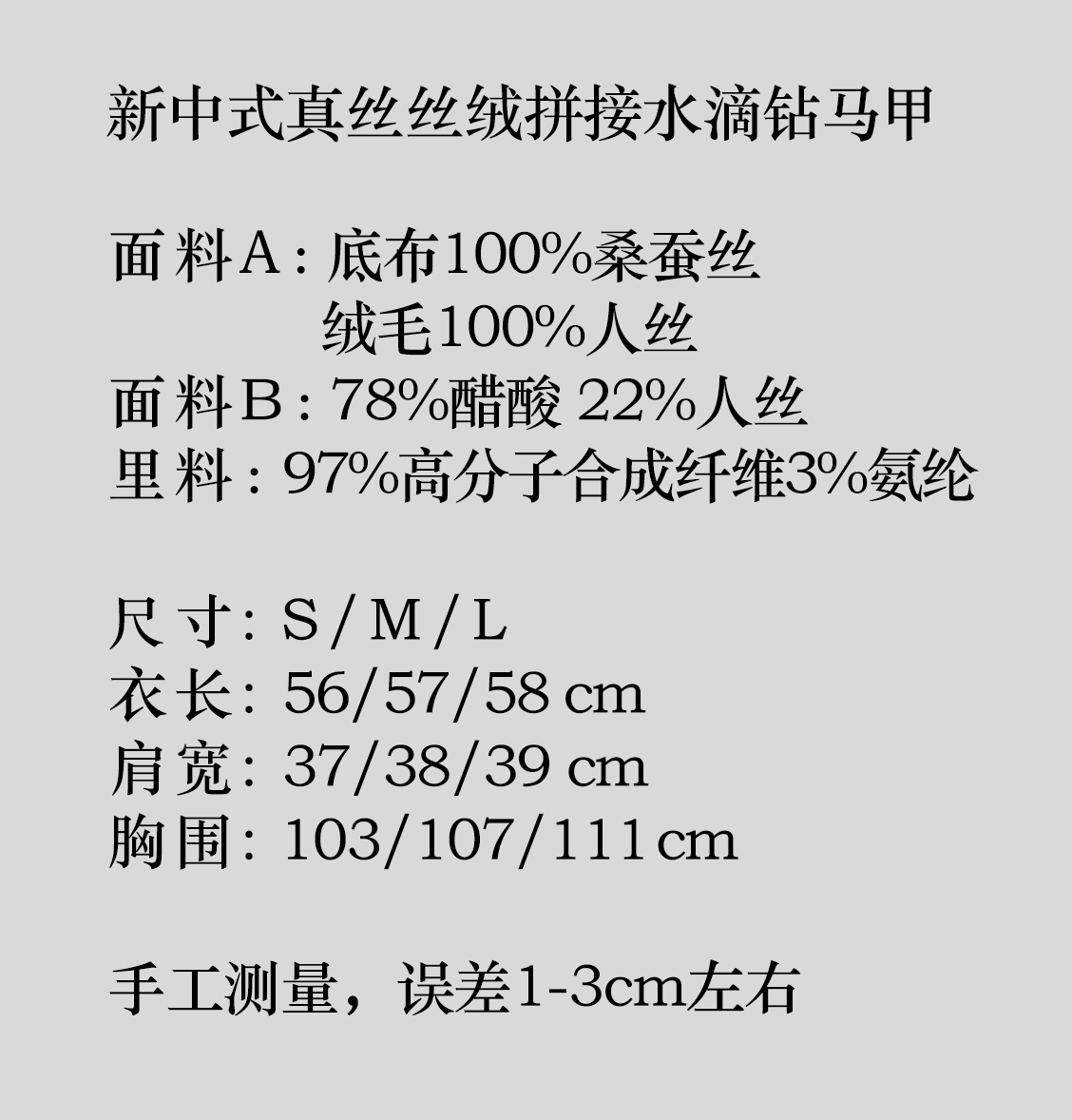 盛唐婧 | 新中式真丝丝绒拼接水滴钻马甲