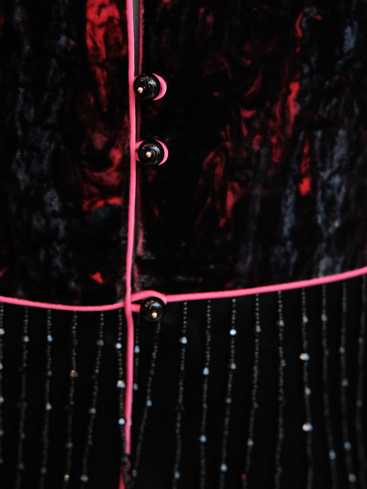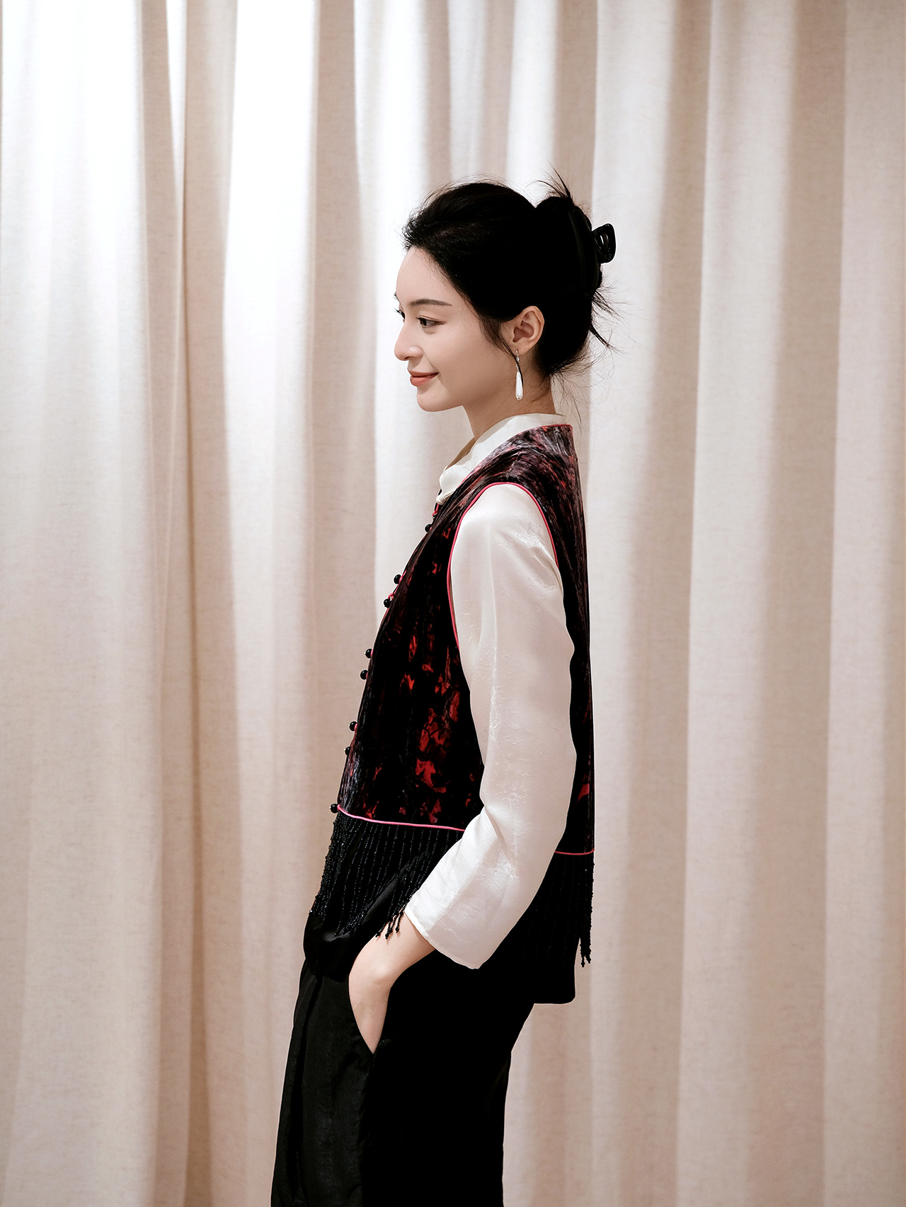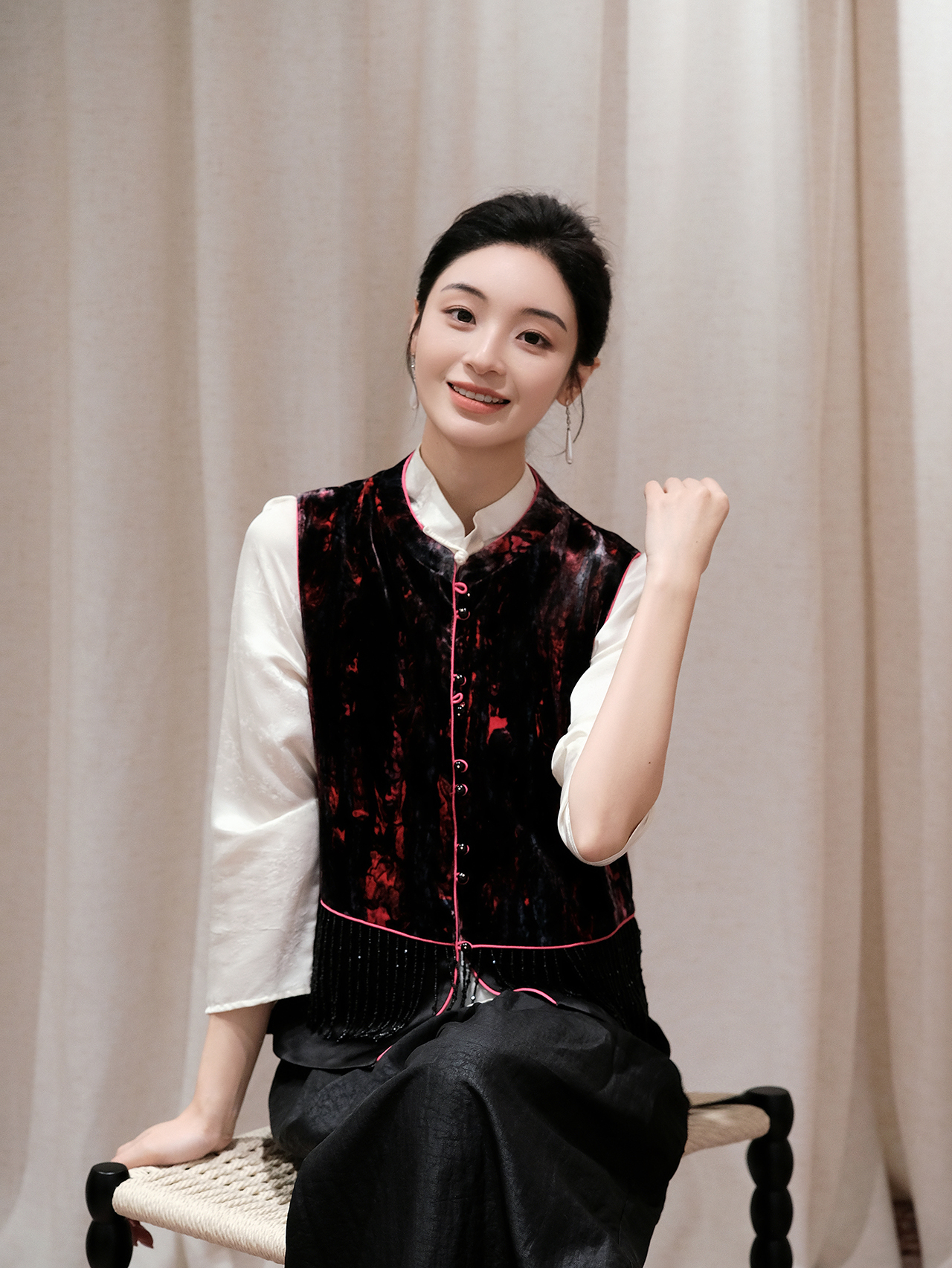 盛唐婧 | 新中式真丝丝绒拼接水滴钻马甲