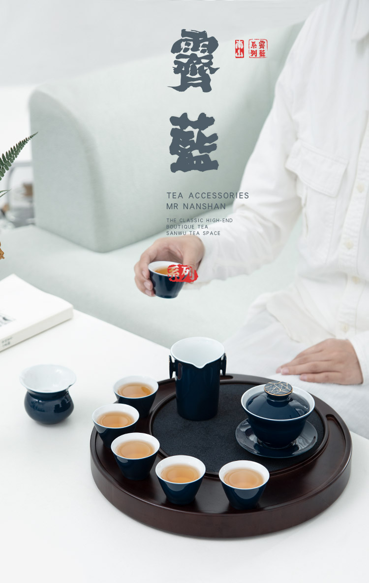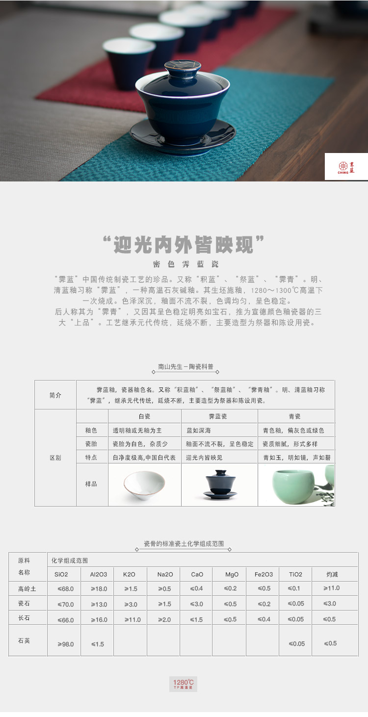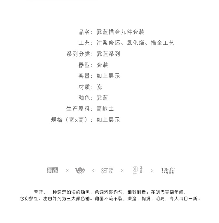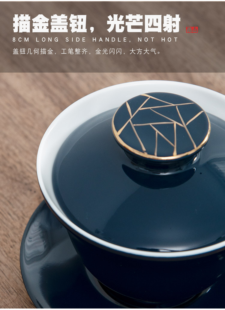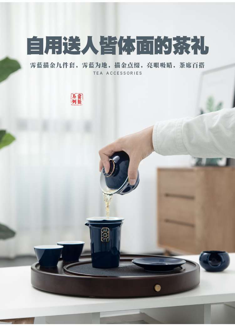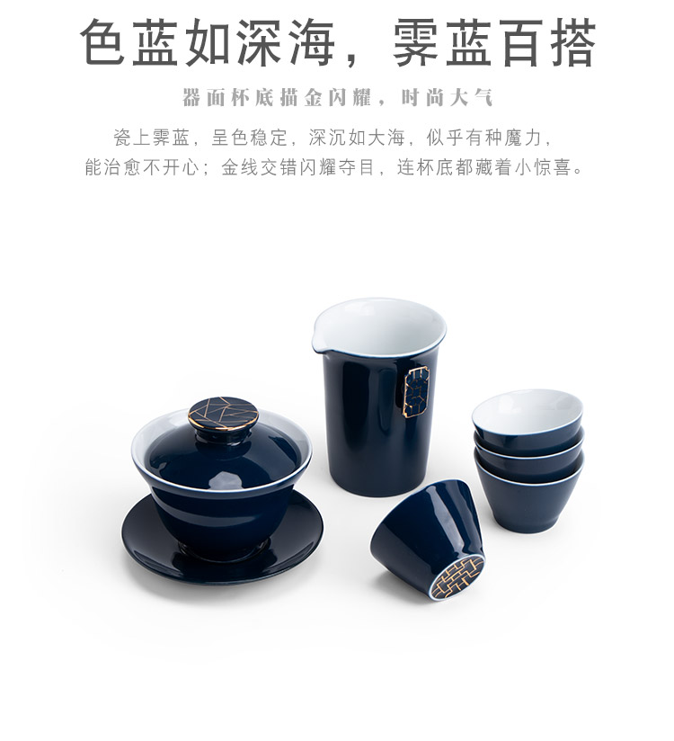 【采购专享】霁蓝 描金盖碗九件套装