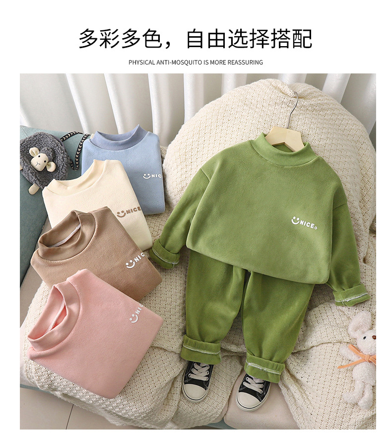 【温暖秋冬❗️儿童保暖居家服】儿童双面绒加厚保暖套装「舒适/加绒加厚/靓丽」看得见的厚度,宝宝穿着暖暖的,奥利绒套装女童加绒加厚,男童保暖内衣秋衣秋裤睡衣L