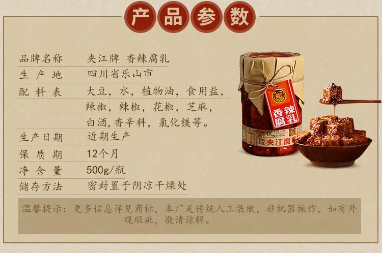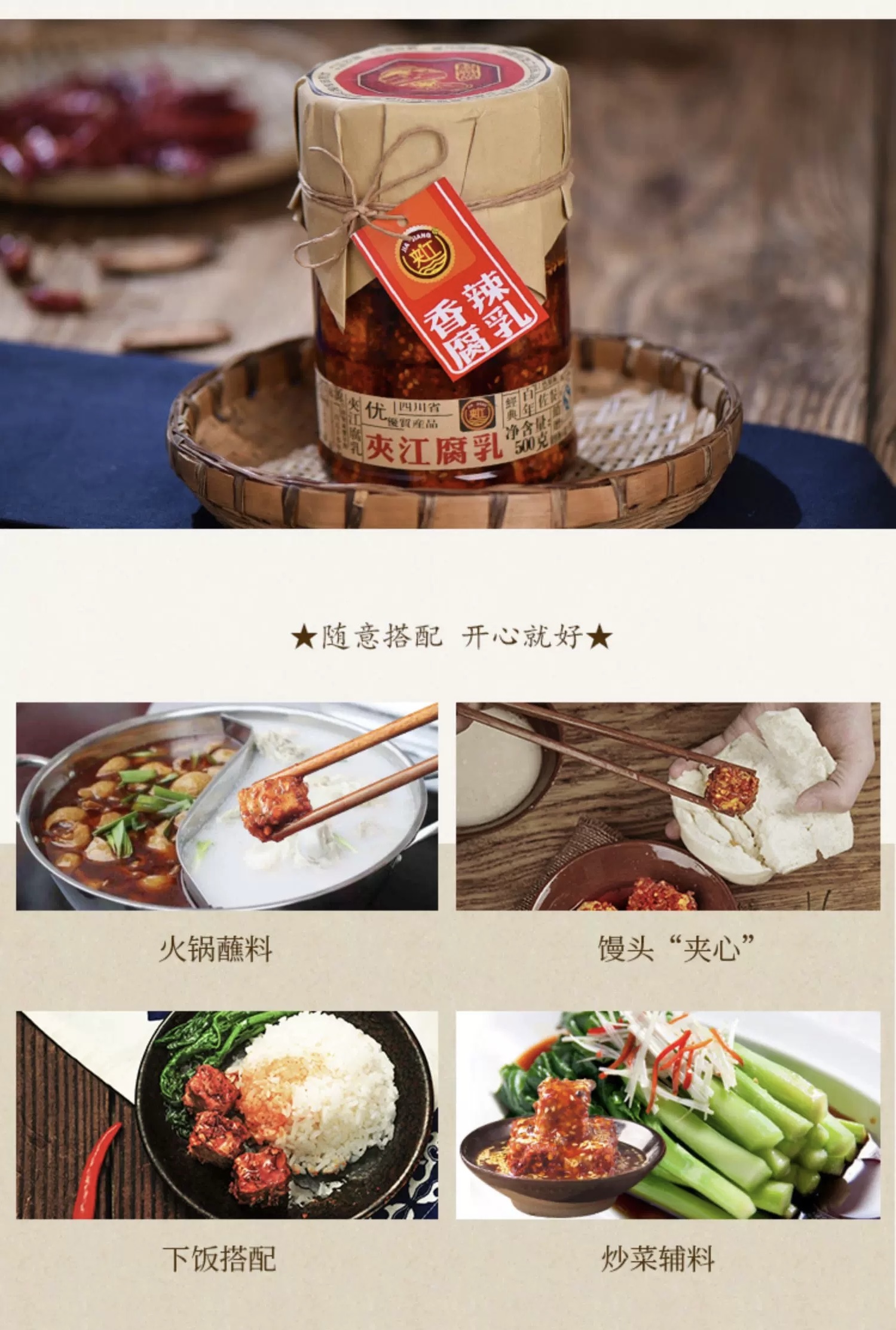 重庆特产 夹江香辣腐乳 500g瓶装 四川红方霉豆腐农家自制下饭菜