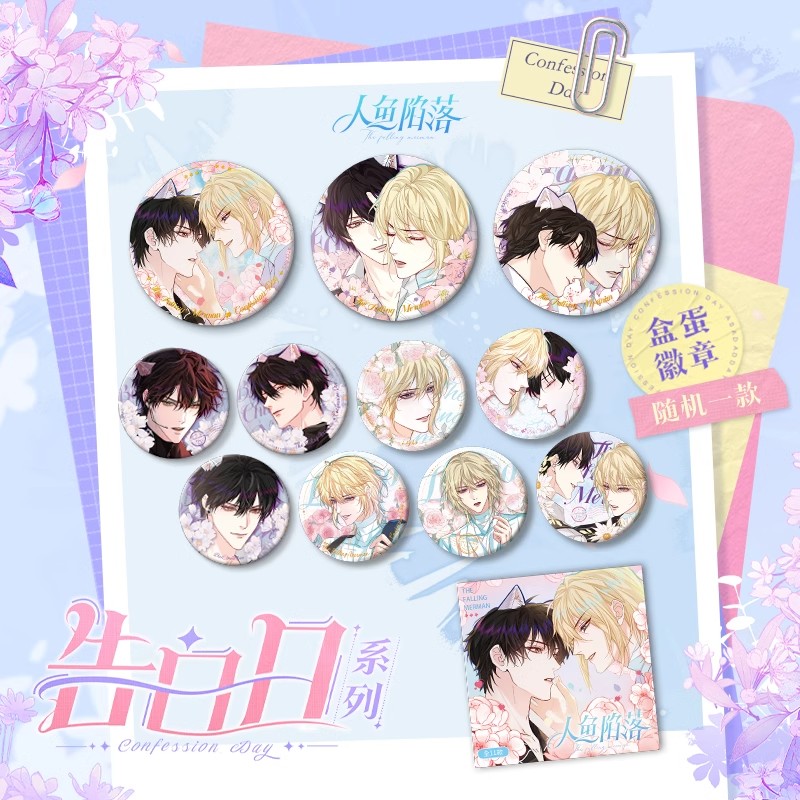 快看 人鱼陷落 告白日系列 徽章 吧唧 全11种 6包/盒 国谷 耽美