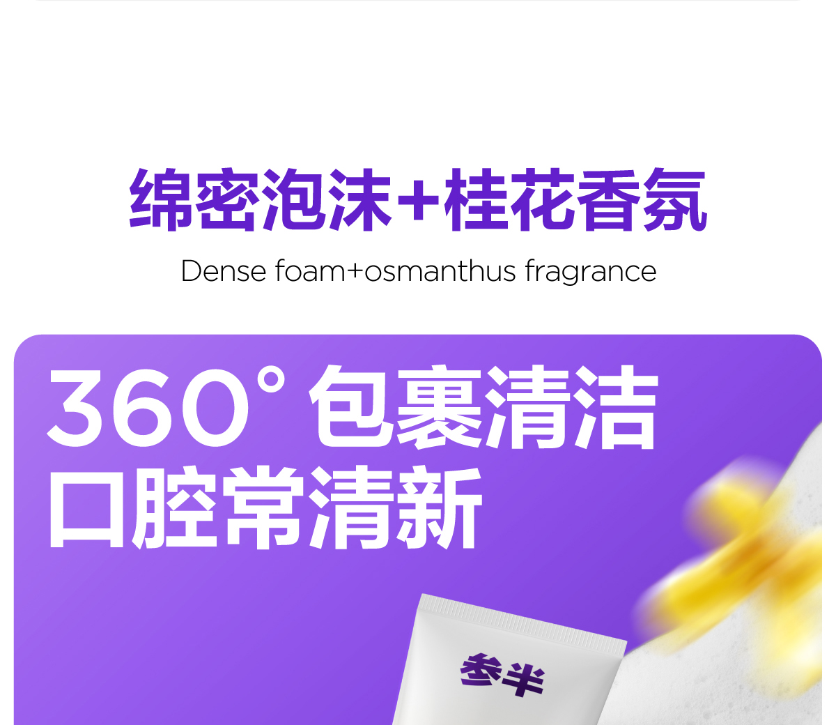 - 参半旗下产品已覆盖牙膏、漱口水、口腔爆珠、口腔喷雾等多个类目,为用户提供了精细化的口腔护理解决方案。