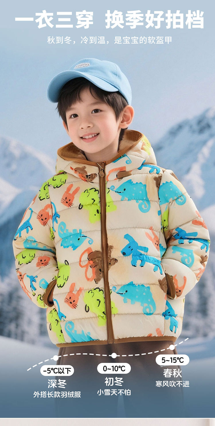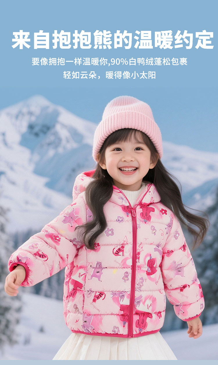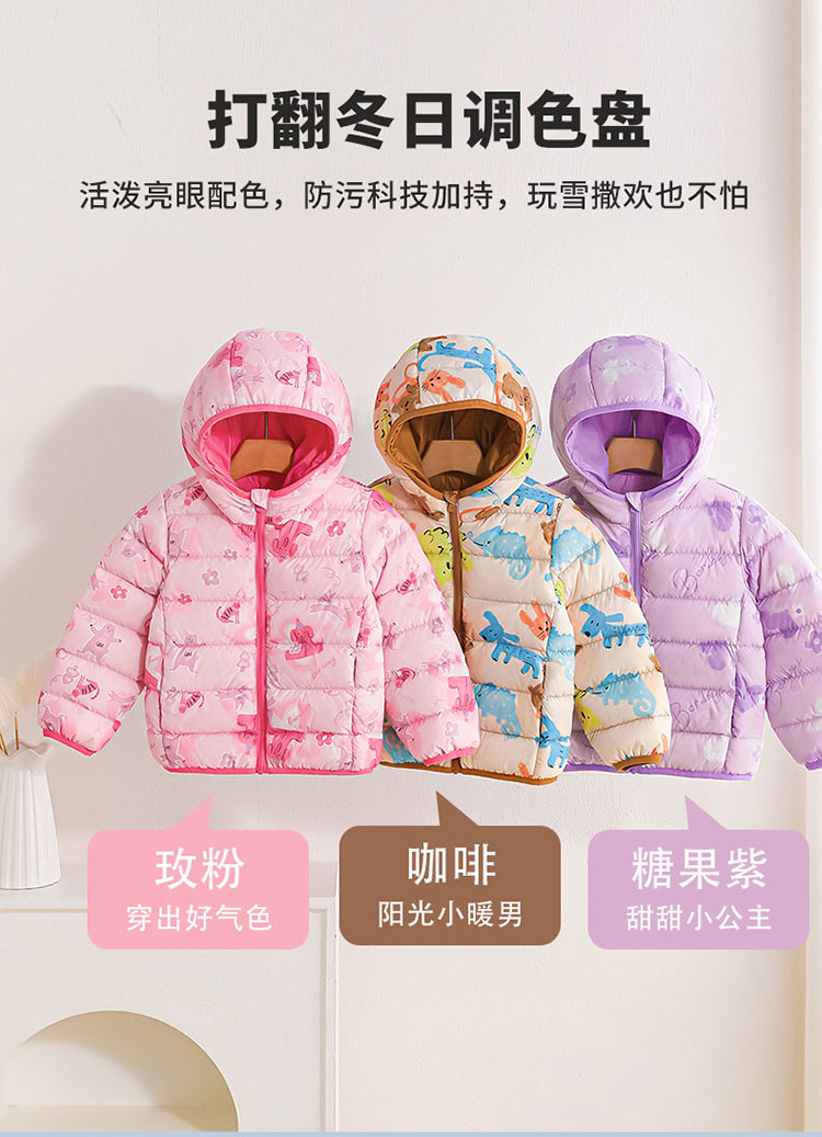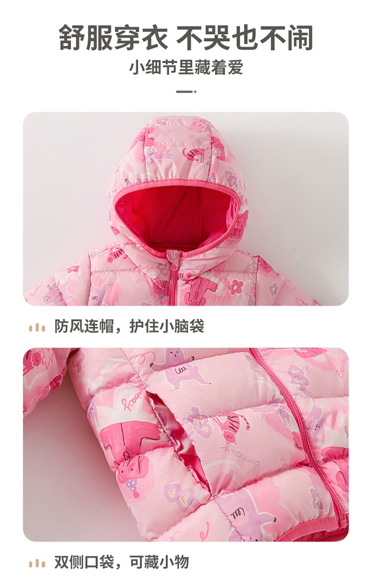 贝贝怡2025秋冬季新款男女宝宝轻薄羽绒服儿童连帽防风保暖羽绒外套ZB4ES009