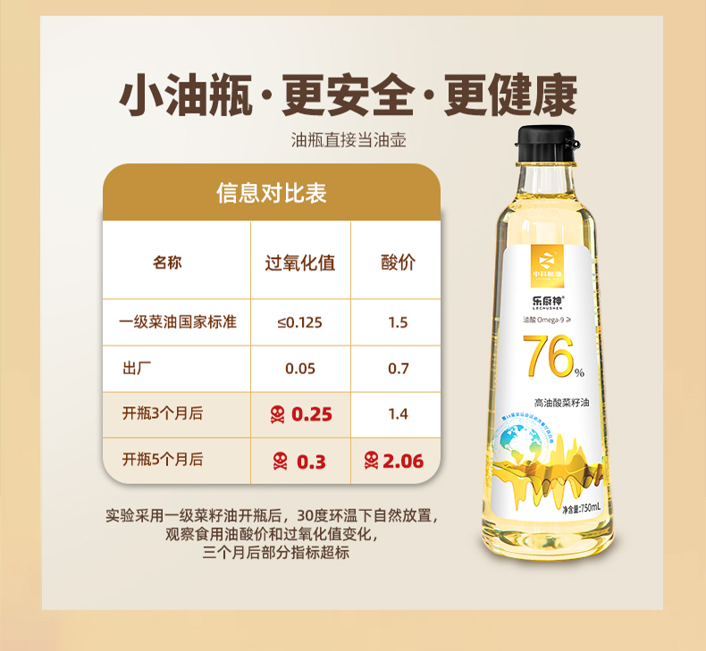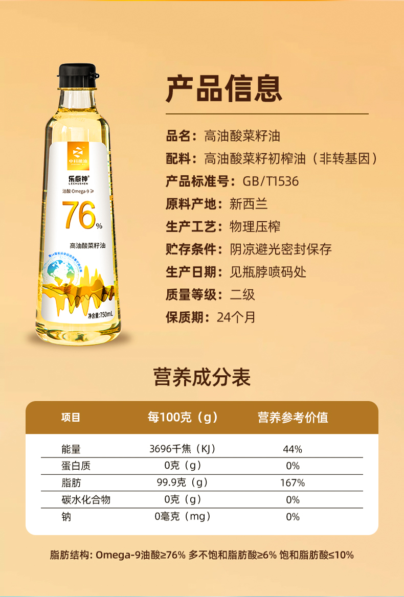 中科粮油 高油酸菜籽油76%油酸 非转基因 物理压榨
