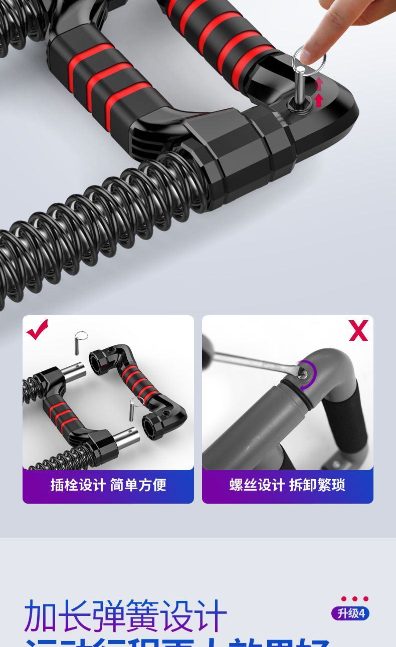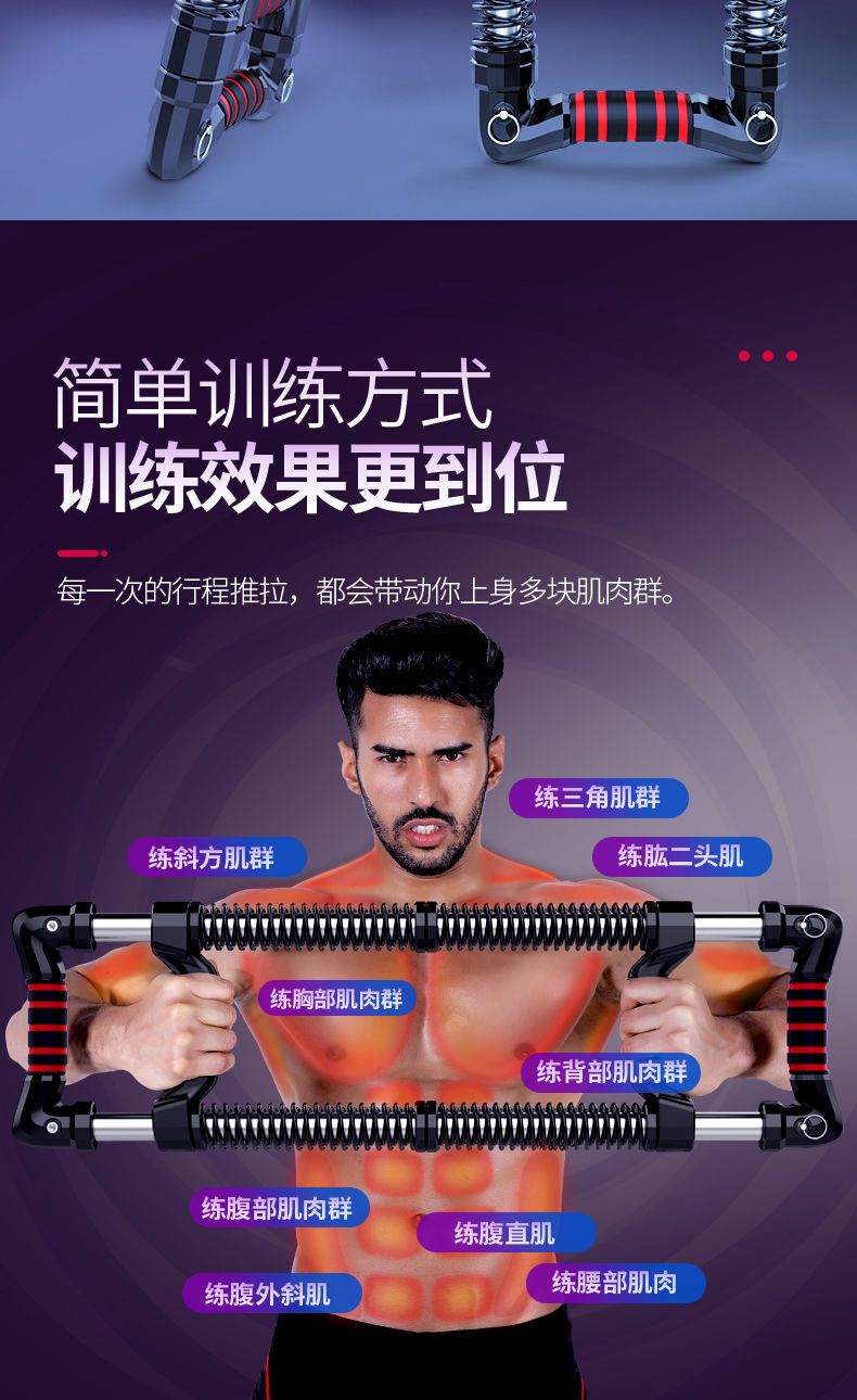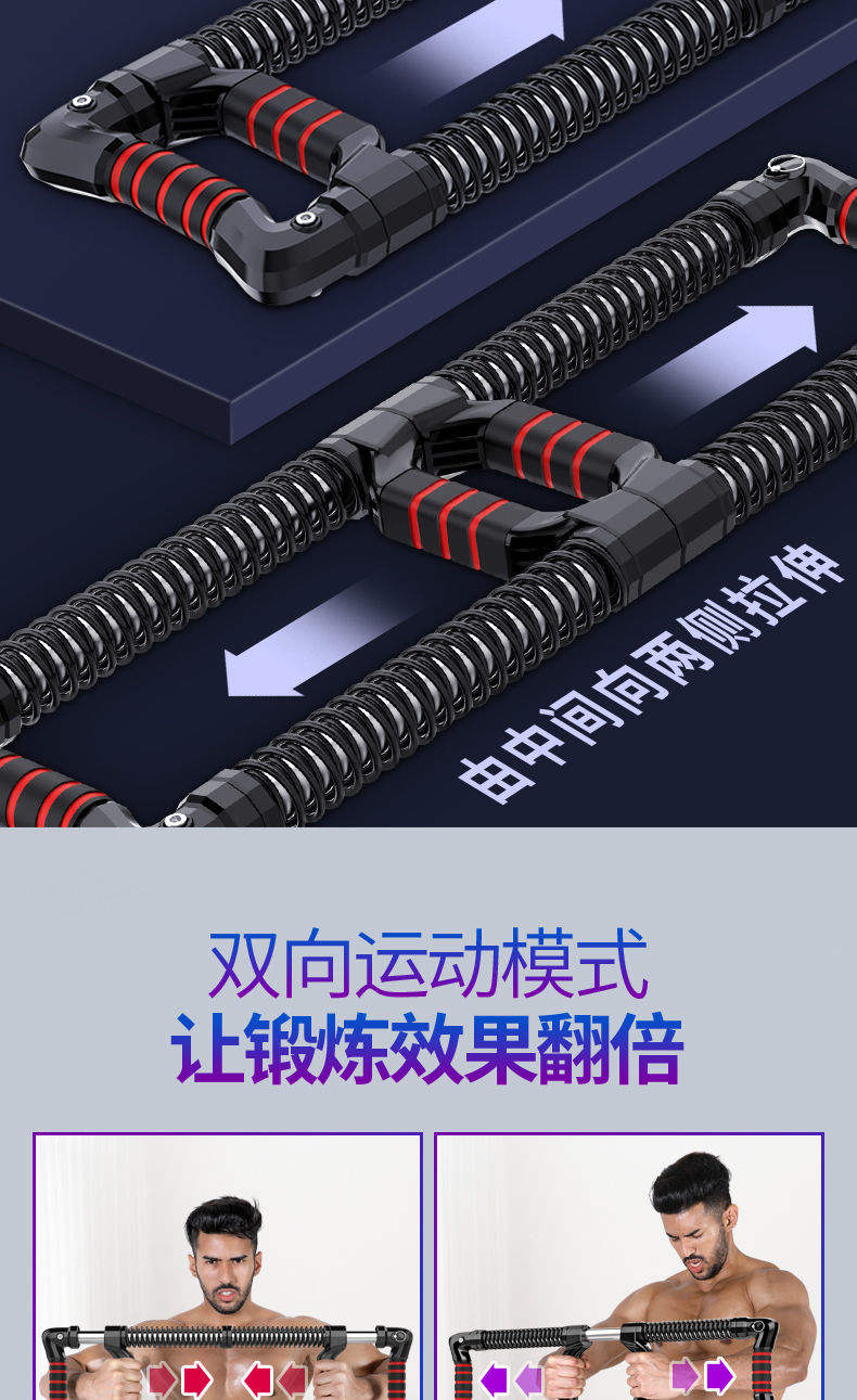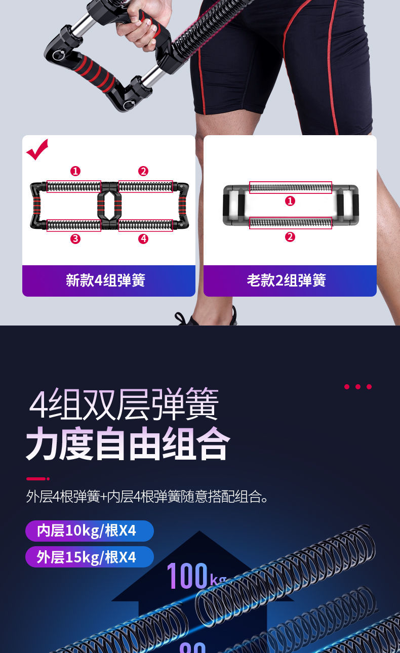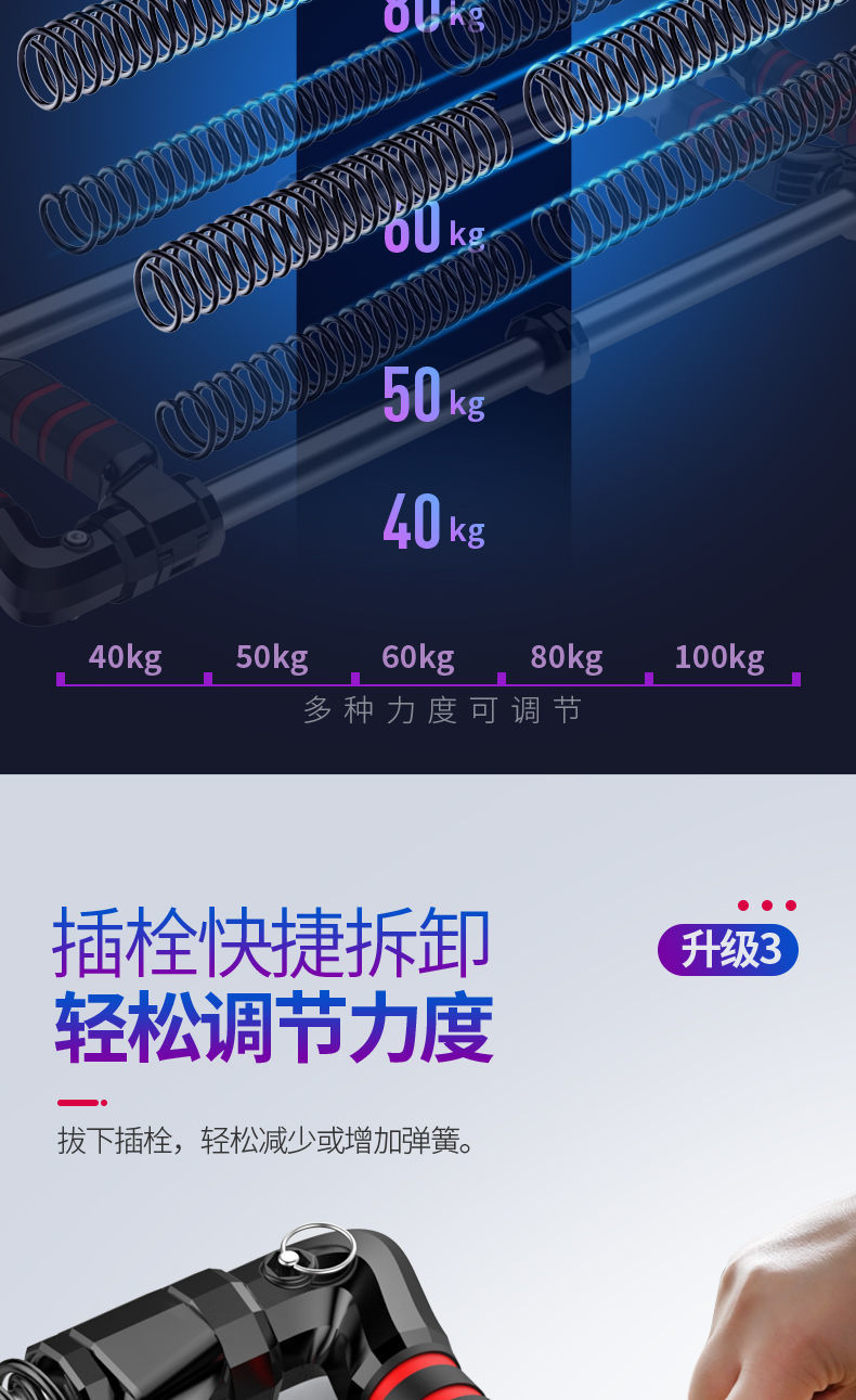 臂力器100公斤可调节练臂力拉压握力棒胸腹肌训练家用健身器材男