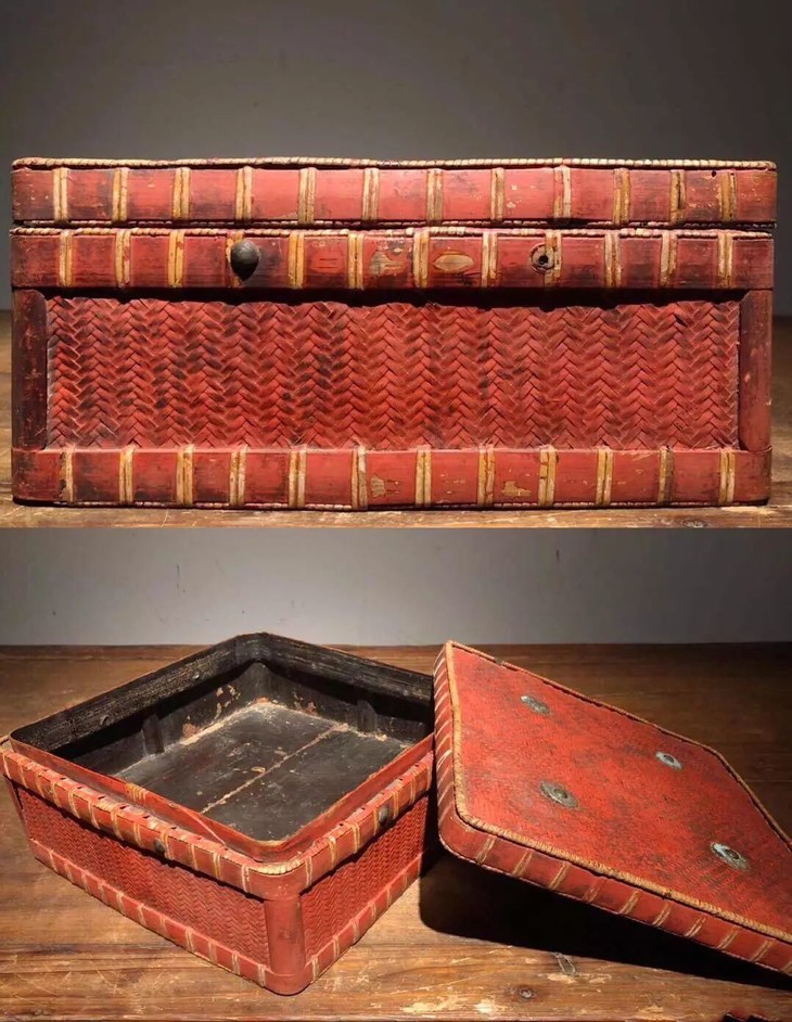 此清代古徽州大漆竹编盖盒造形优雅、色泽艳丽的大漆方盒大小适中,摆放于空间内清新脱俗,或可收纳茶具与茶叶等物,风格媲美高端欧美品牌之帽盒或珠宝收纳盒。
