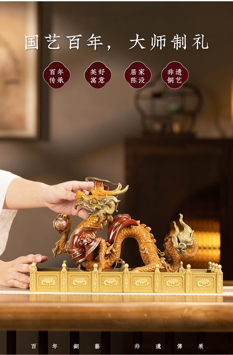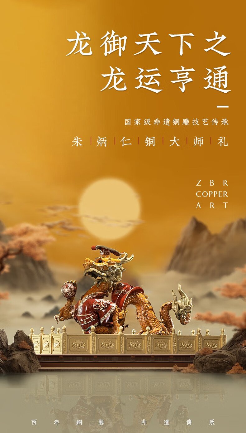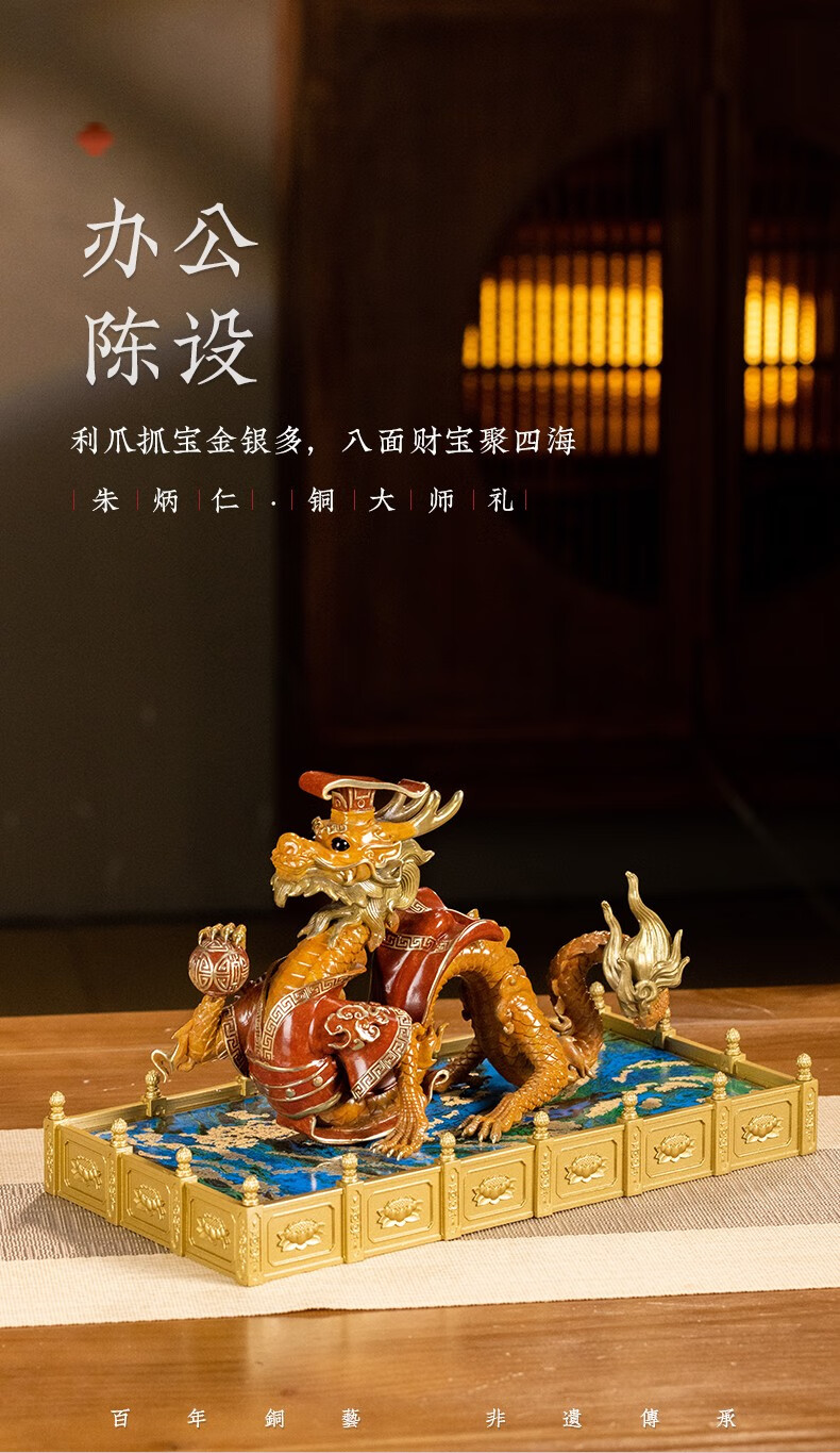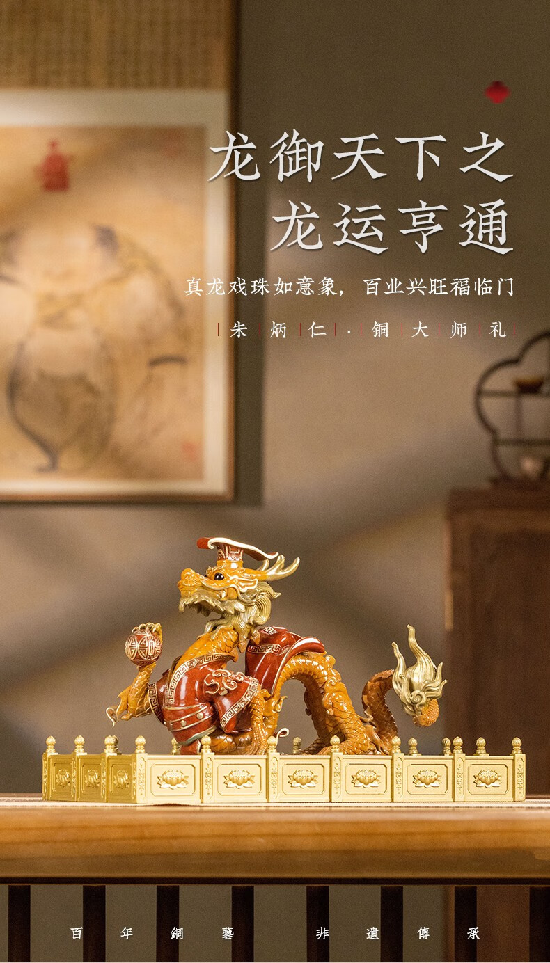 【6F】朱炳仁铜 龙御天下之龙运亨通龙客厅玄关工艺品家居装办公室摆件礼品 龙御天下之龙运亨通