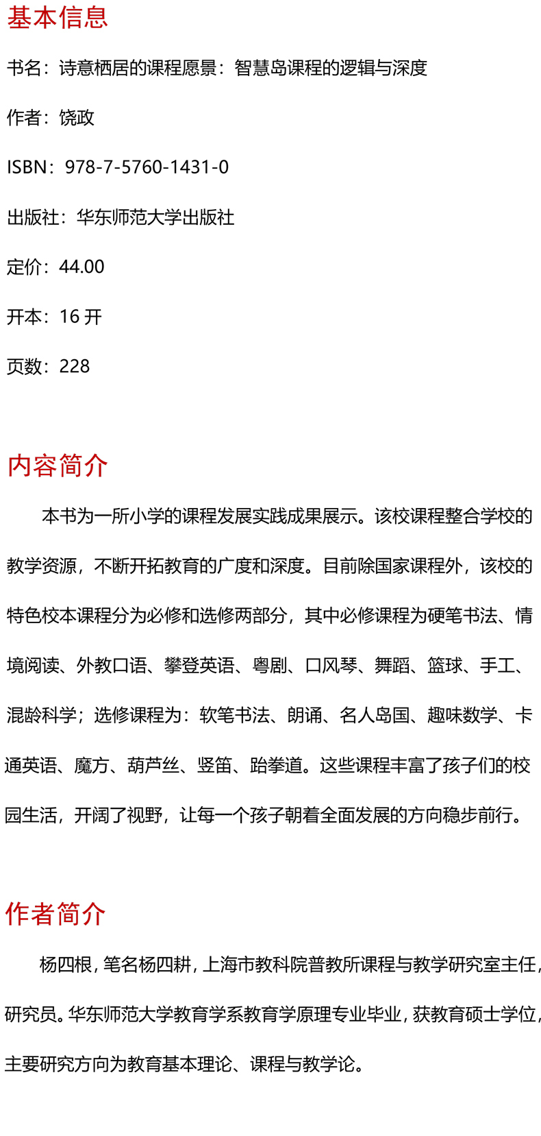 诗意栖居的课程愿景 智慧岛课程的逻辑与深度 特色课程建设丛书 杨四耕主编 小学课程建设 教学研究