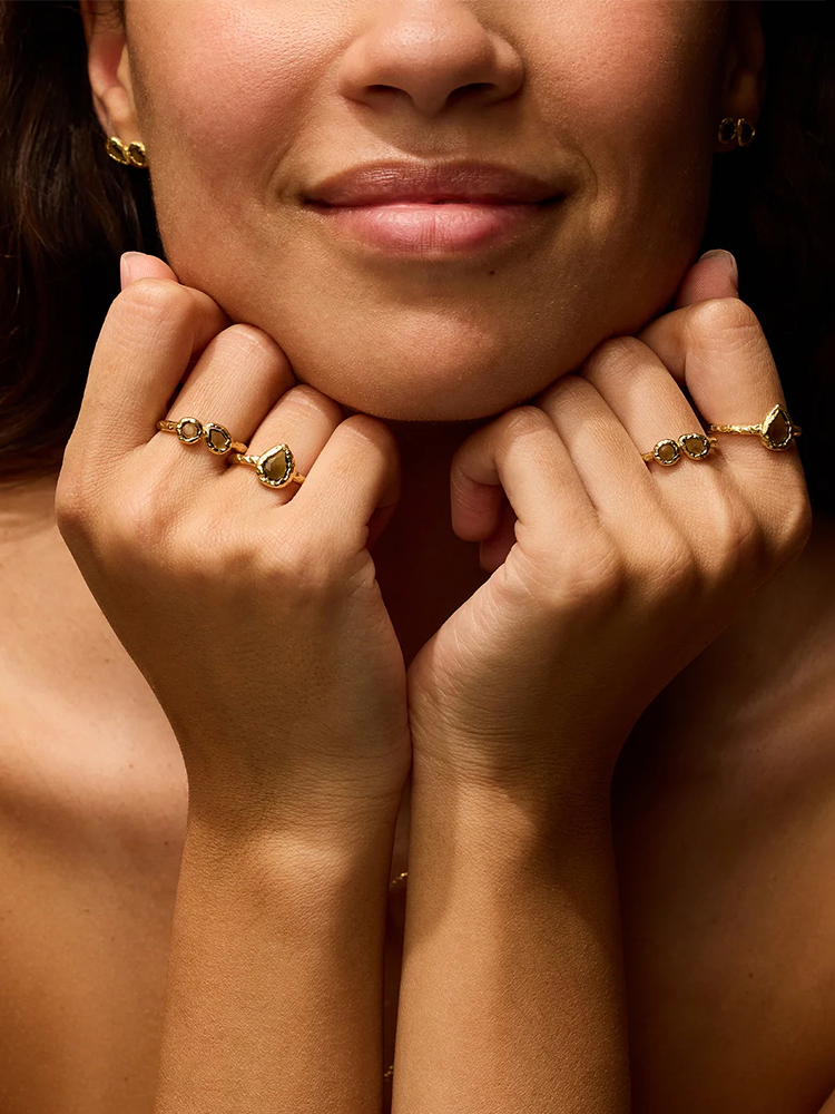 北京仓|Agapee-LYSIANA-金色 圆形 水滴 戒指[法国设计师]