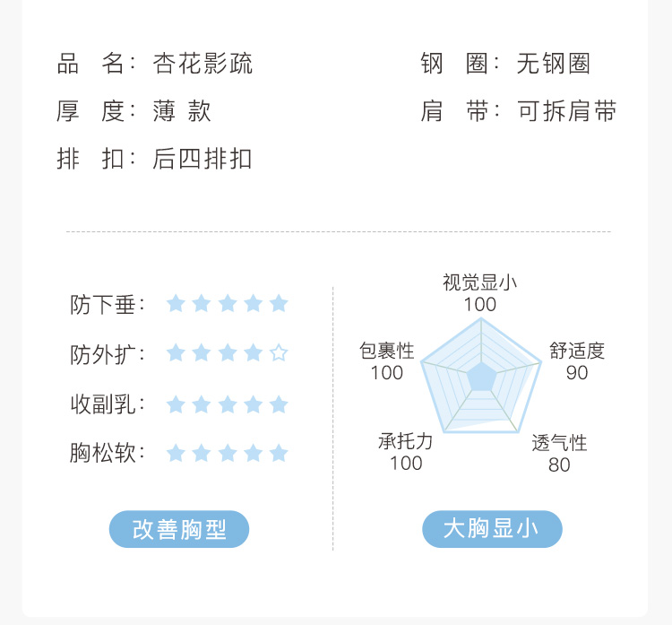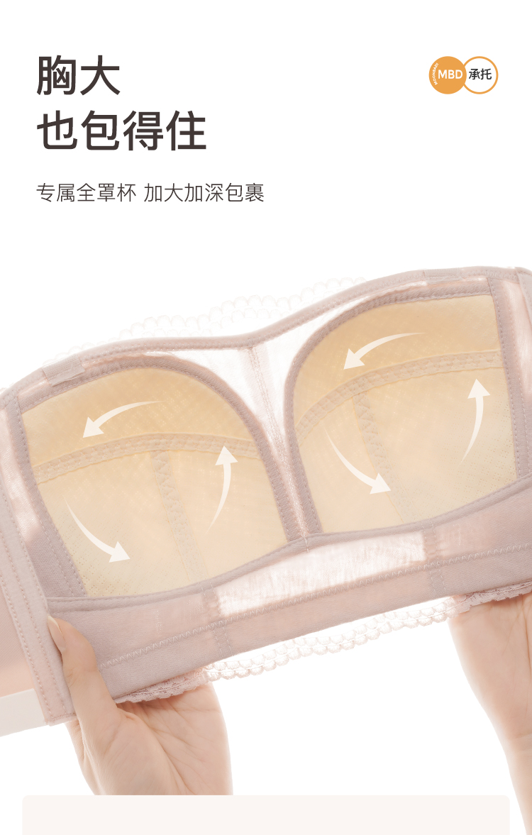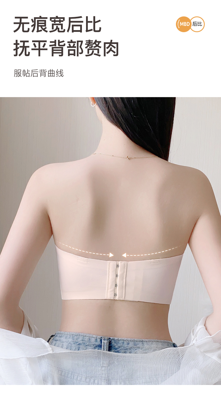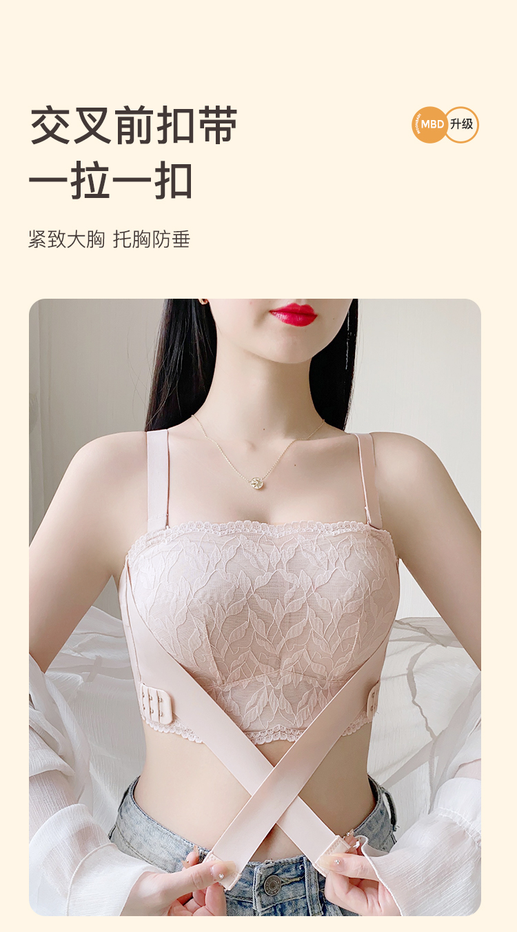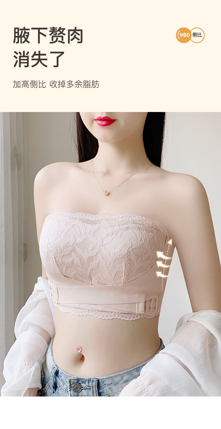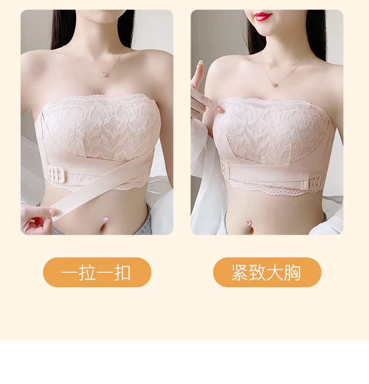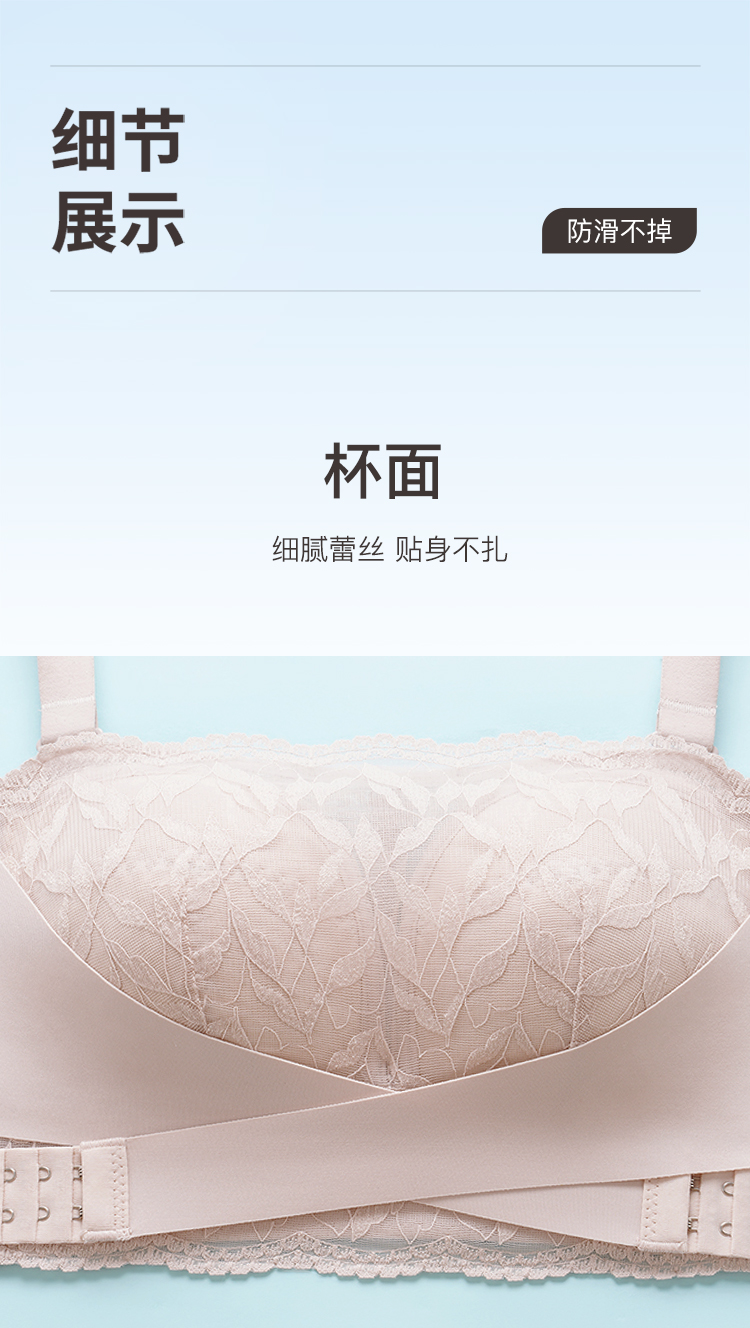 大胸防滑不掉抹胸款无肩带内衣女舒适薄杯收副乳无钢圈文胸罩杏花影疏