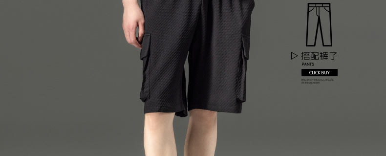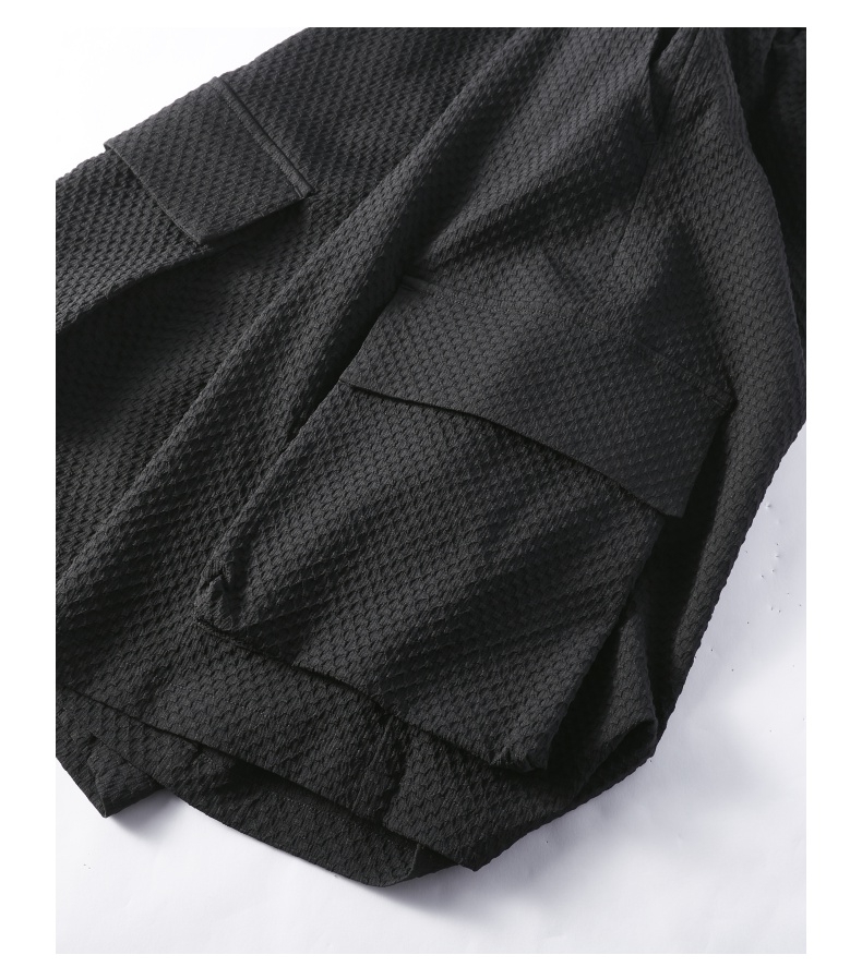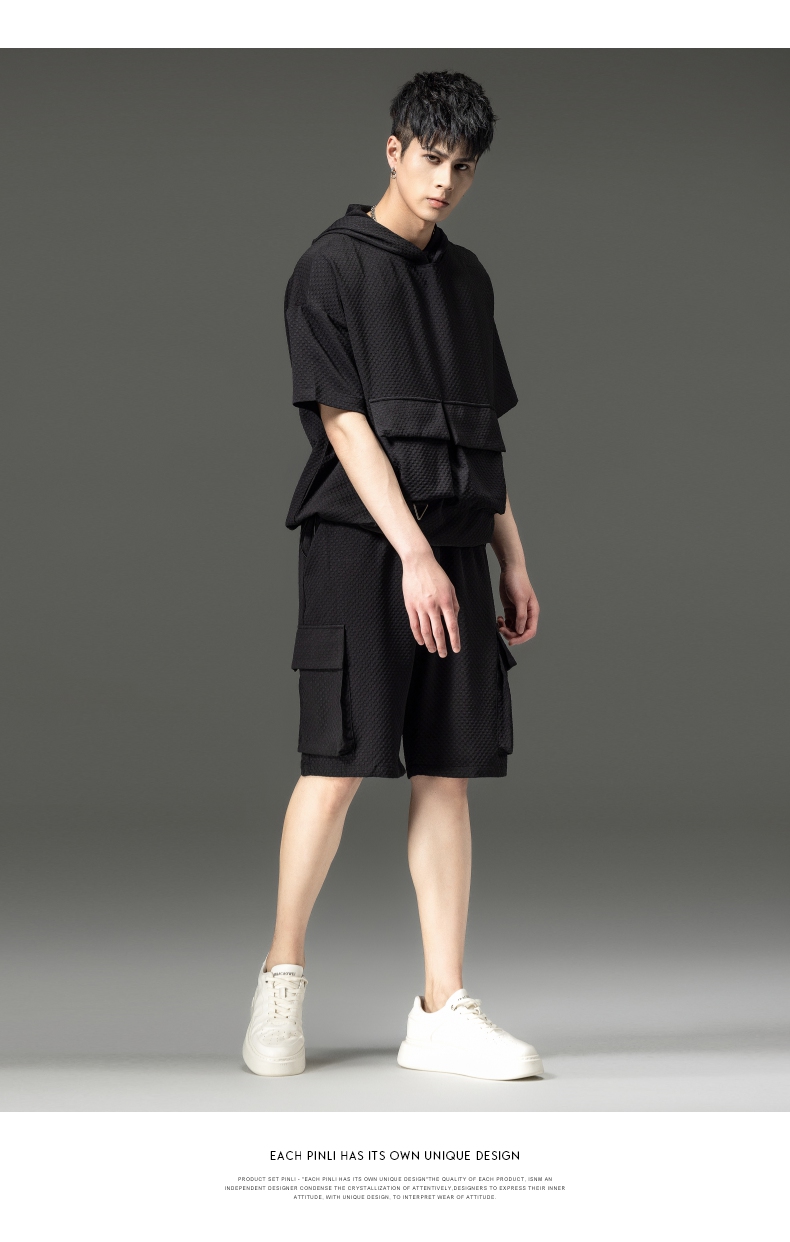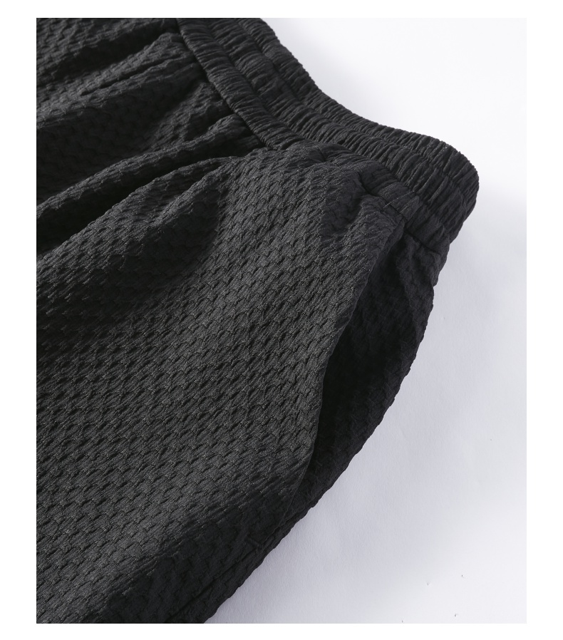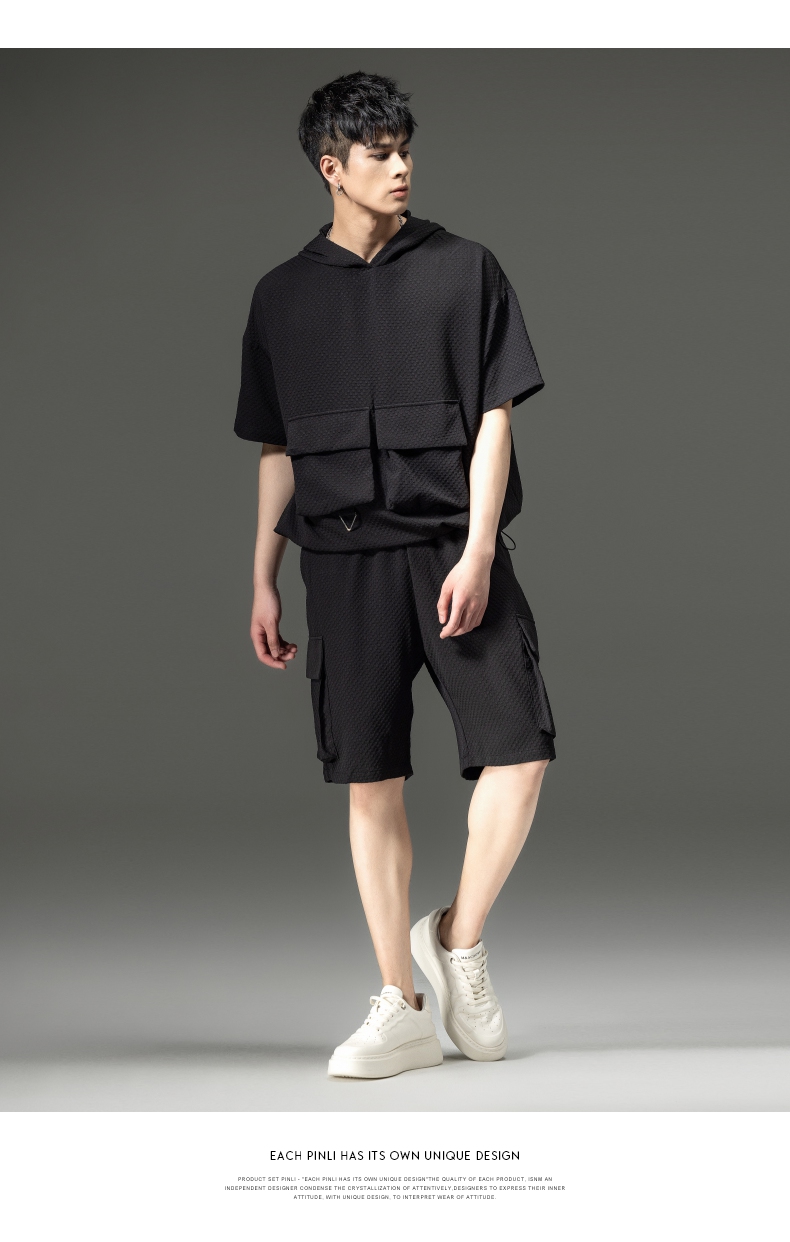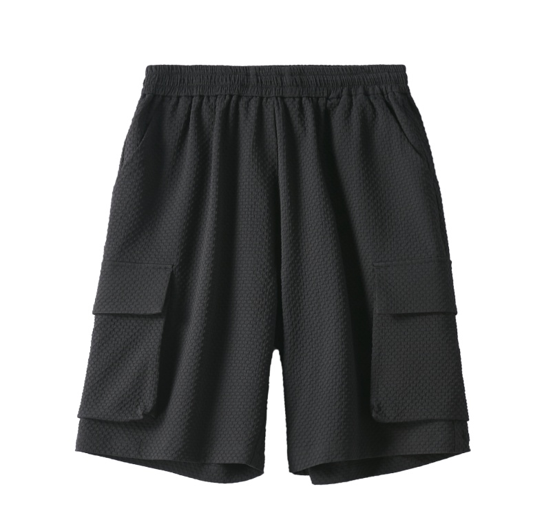 PINLI品立裁魂夏季新款男直筒华夫格工装短裤黑色休闲五分裤BC242117032