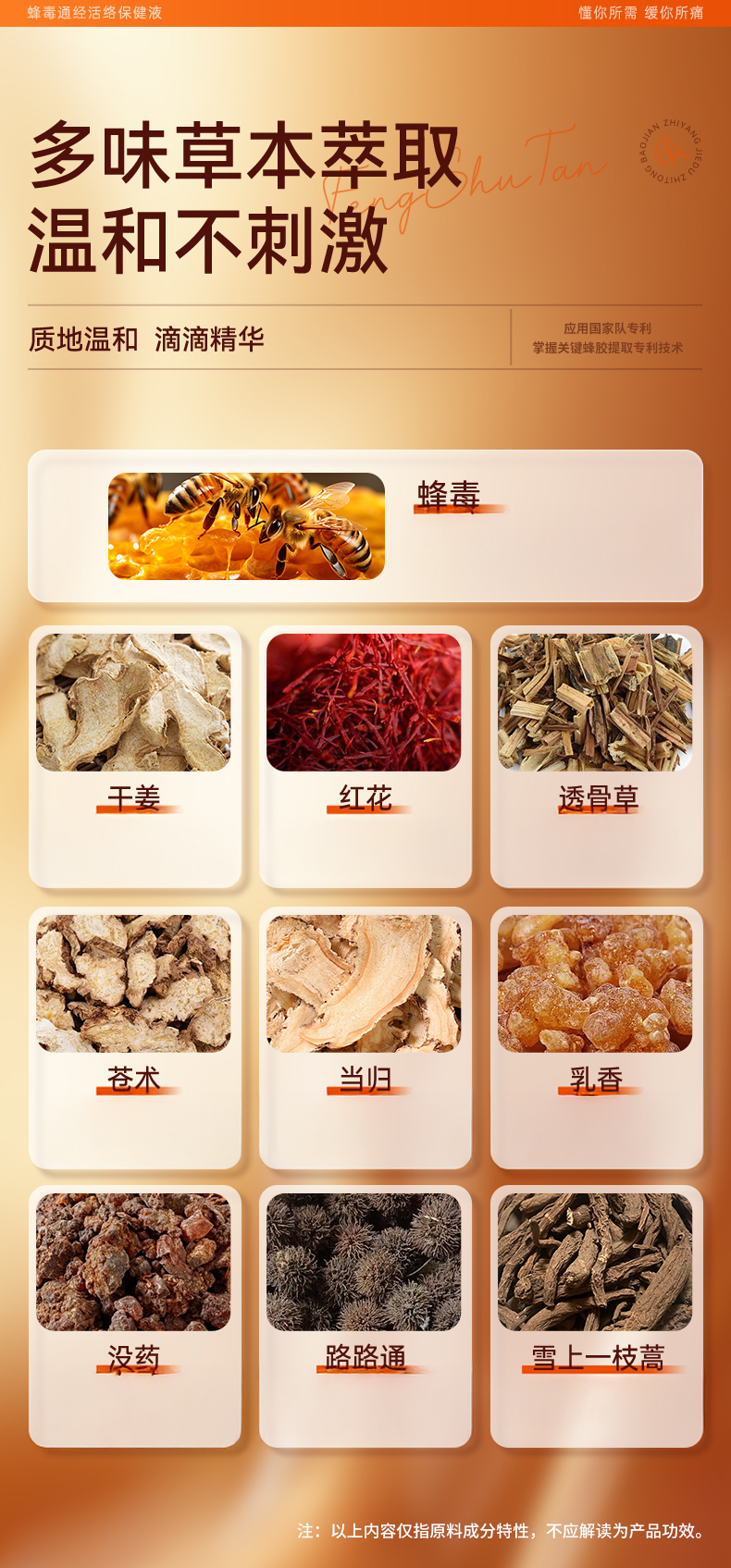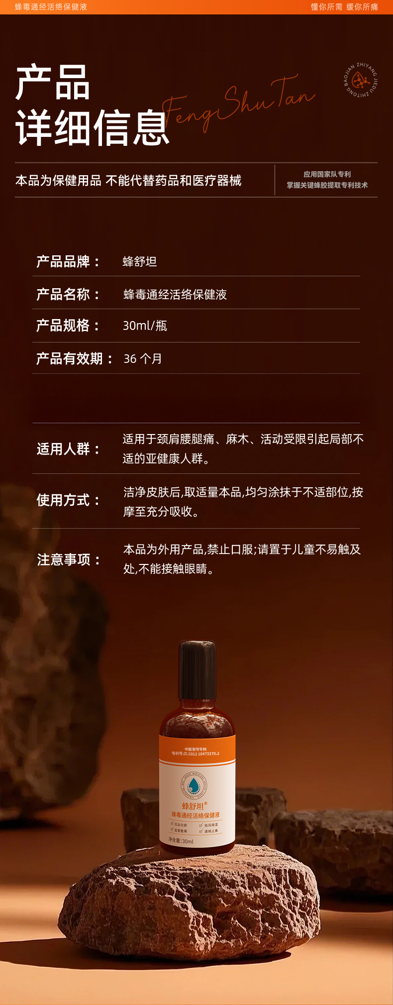 【品名】 蜂舒坦 活络保健液 30ml/瓶 【规格】30ml/瓶 【产地】国内 【发货包装】独立包装 【发货地】广州 【发货快递】申通、韵达随机发 【补邮费地区】新疆、西藏、青海、宁夏+15元/单 【发货时效】48-72小时,周末节假日顺延 |