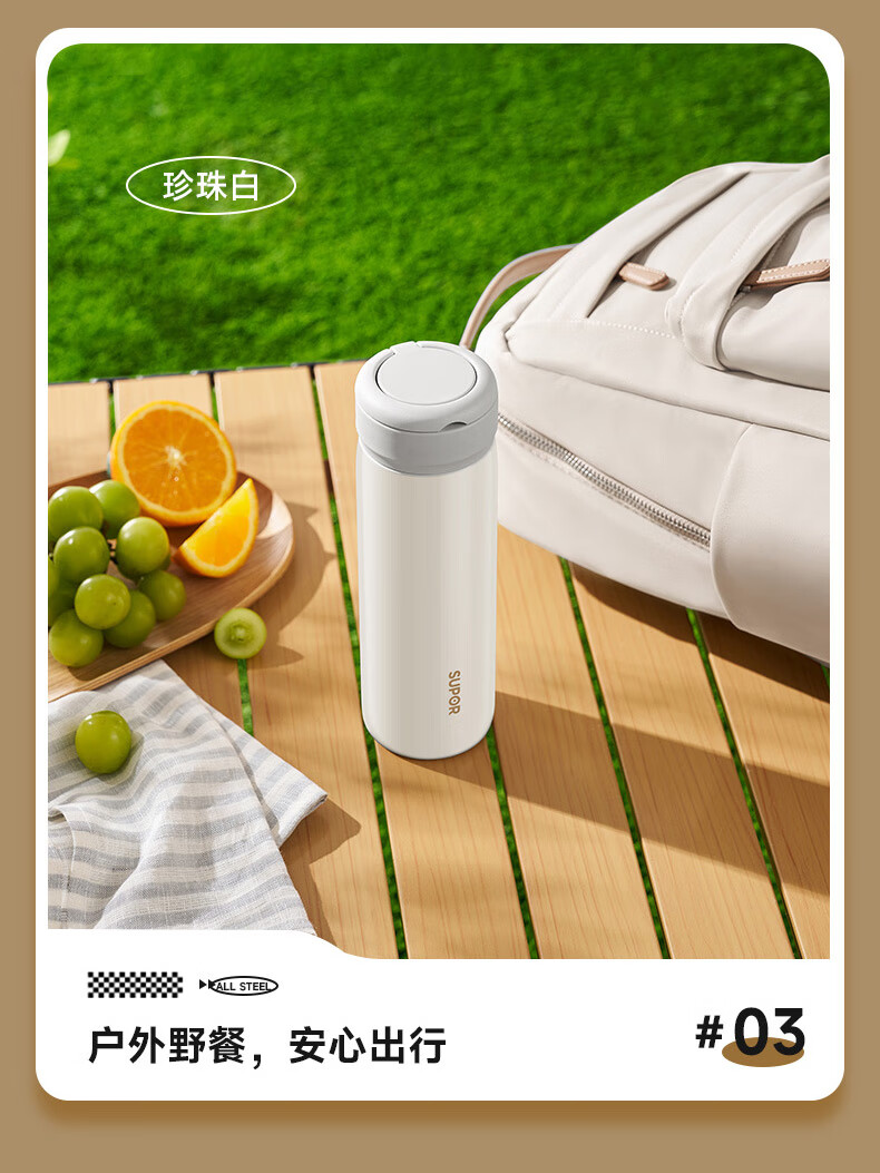 苏泊尔(SUPOR)保温杯316L不锈钢保温杯 浅衫绿 450ml BC10
