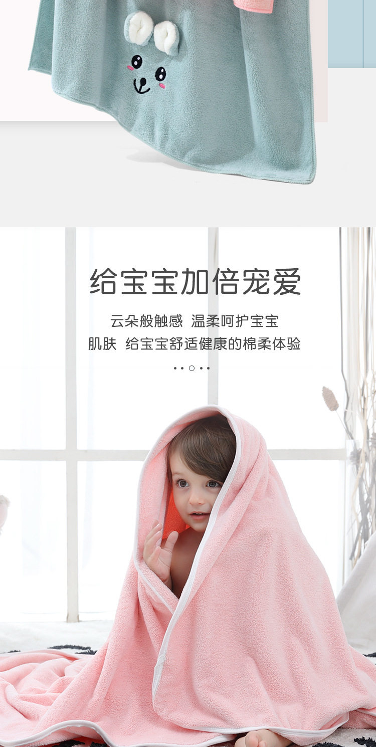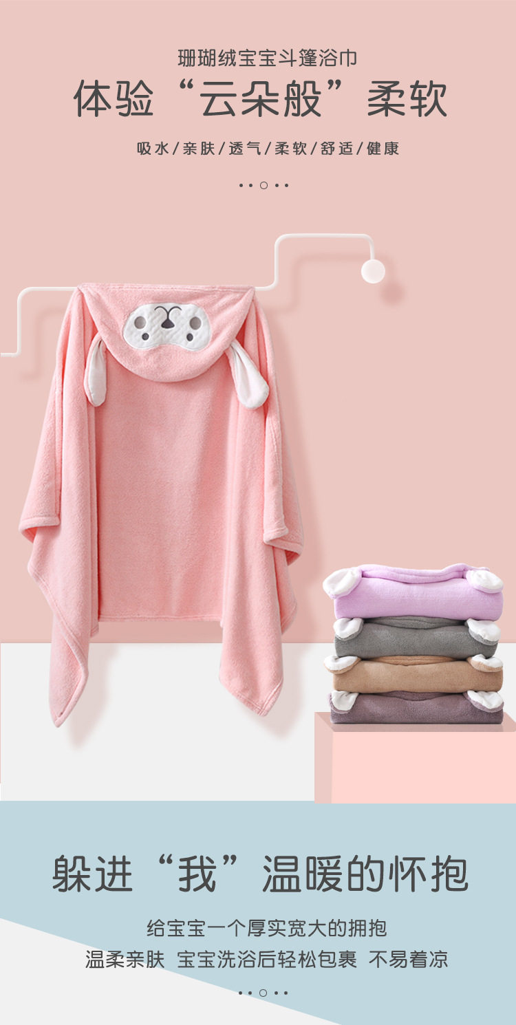 儿童珊瑚绒连帽浴巾加厚披风刺绣斗篷柔软四季可穿亲肤跨境定制