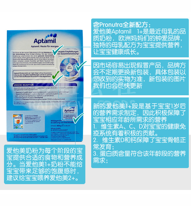 保税仓 德国原装爱他美奶粉Aptamil 成长1+段 1岁 4盒包邮