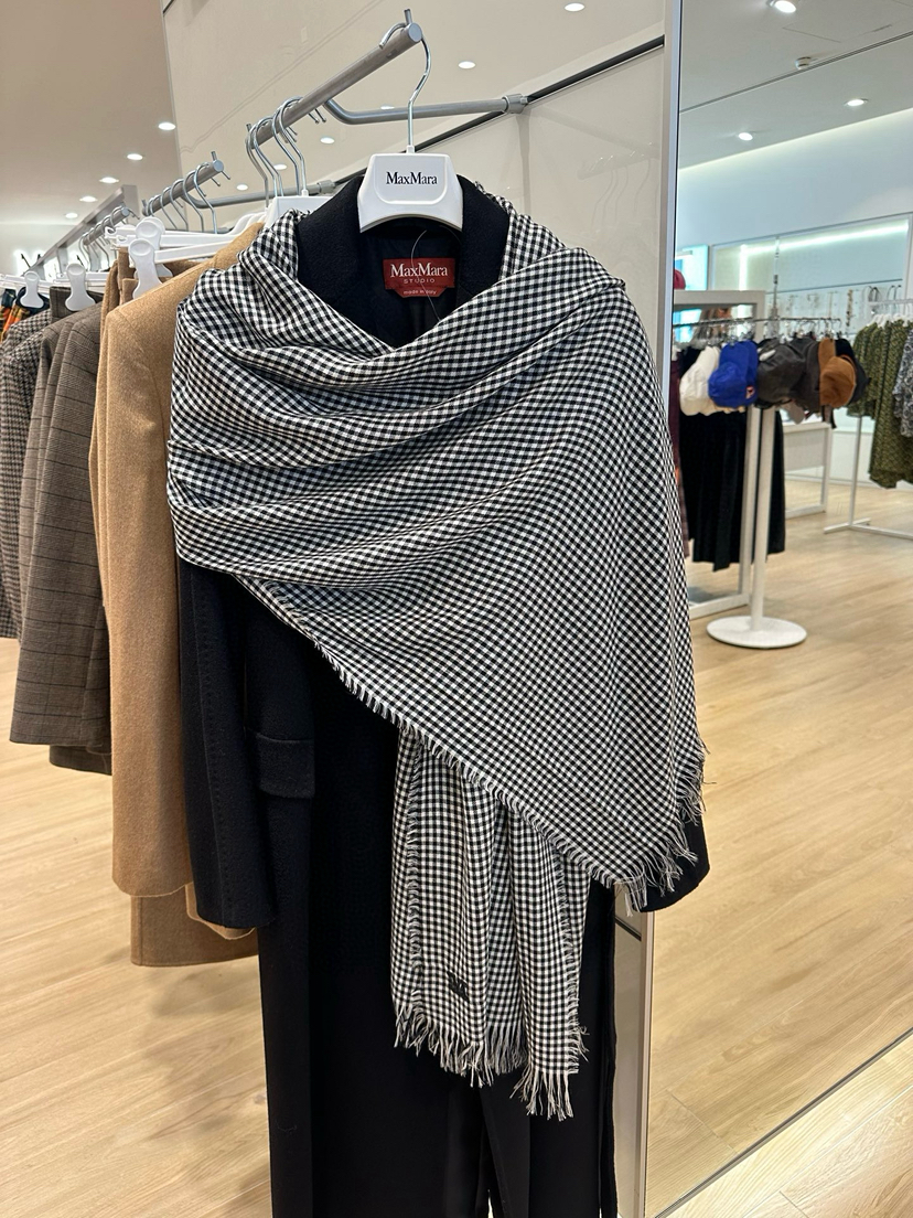 国内现货MaxMara纯羊绒格子围巾1450元配购物袋